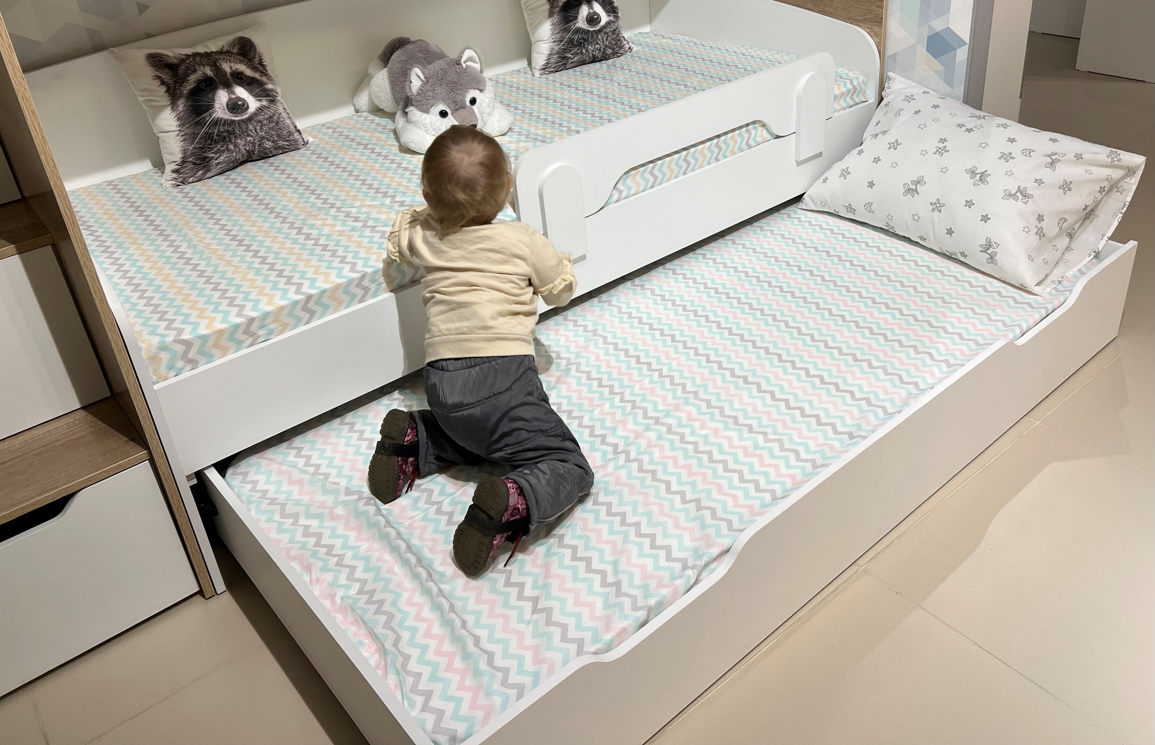 Дополнительно к нижним кроватям можно приобрести съемный бортик-ограничитель.