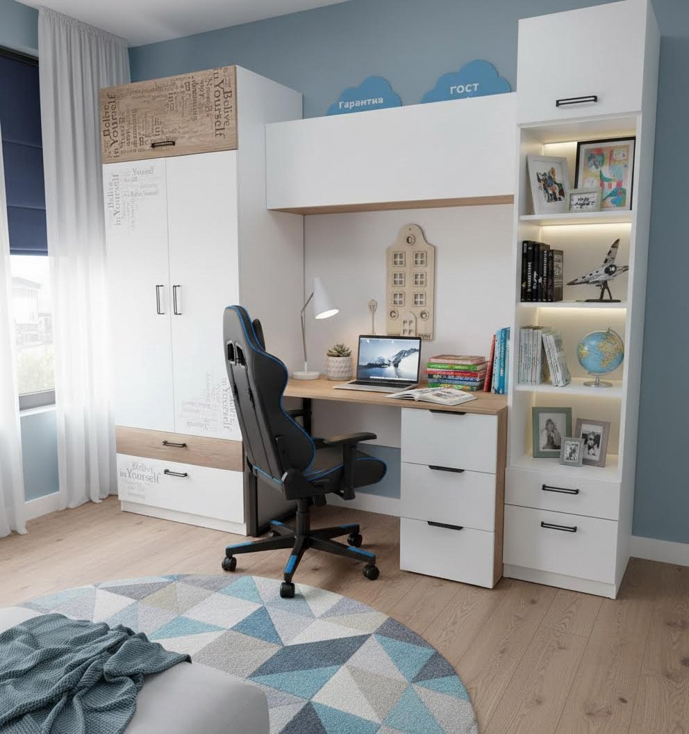 Закрытая полка с дверкой и системой тач-клик идеально подойдет не только для детской комнаты, но и для домашнего кабинета или офиса.