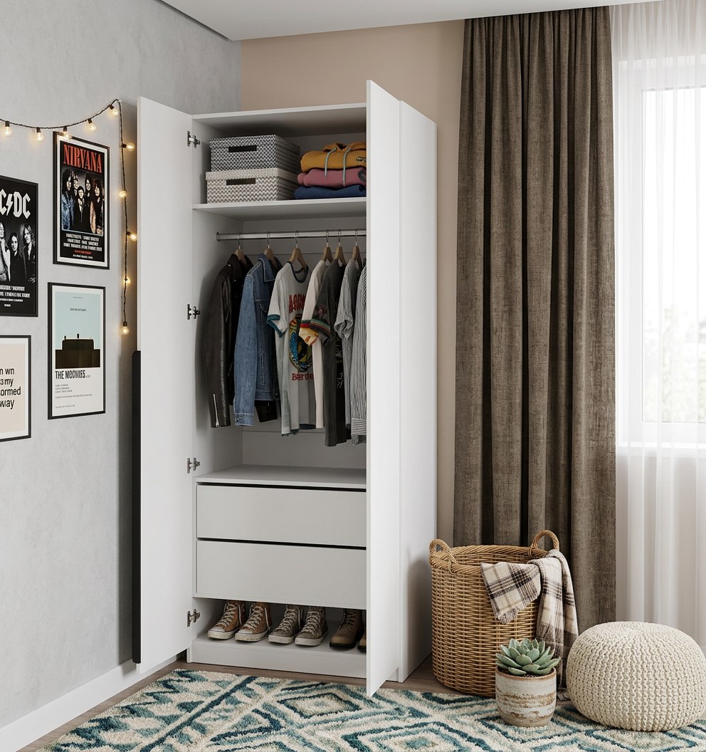 Двухстворчатый распашной шкаф коллекции мебели Брайт - удобный и функциональный шкаф для хранения вещей.