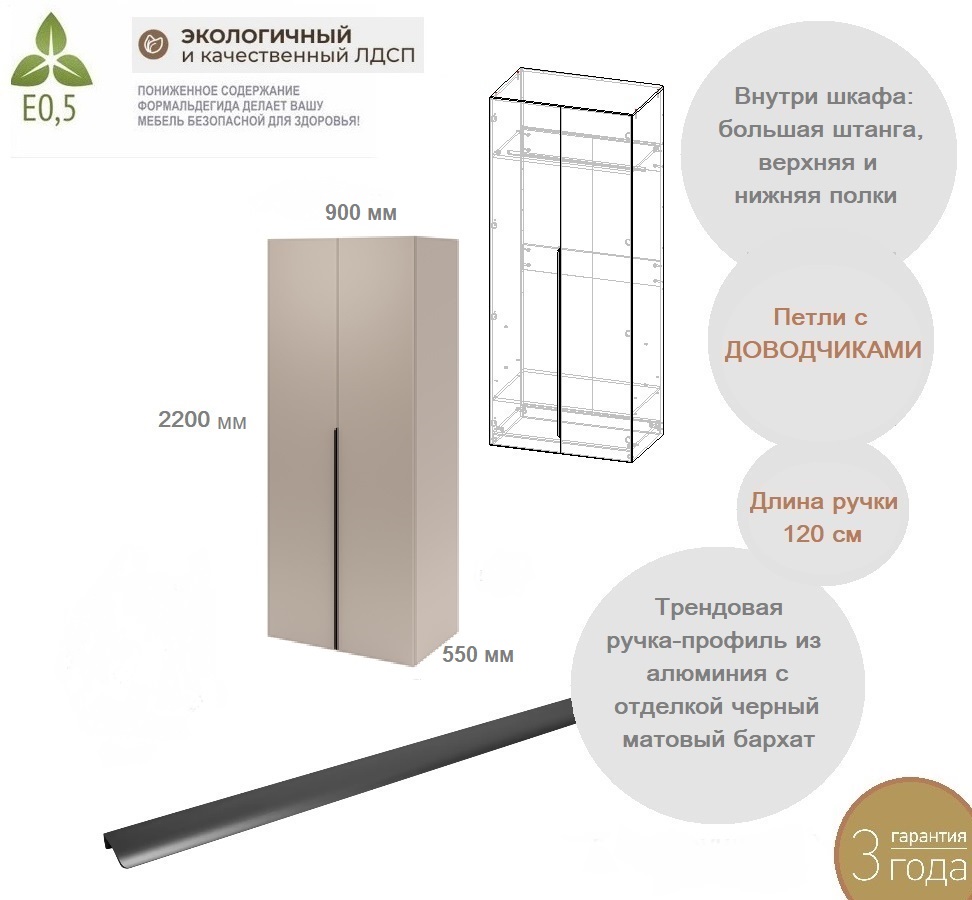 Трендовая ручка-профиль из алюминия с отделкой черный матовый бархат добавляет изделию стильную изюминку.
