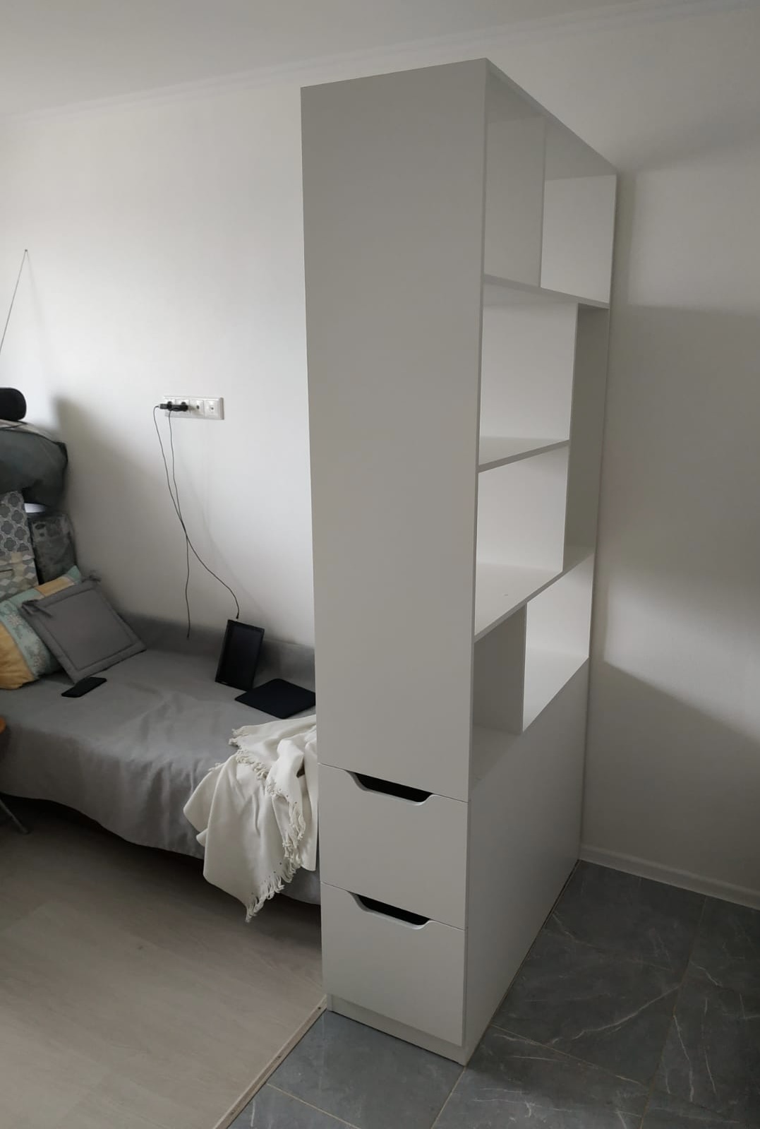 <comment>Просто шикарный стеллаж для создания зонирования! Подкупили сразу вместительные выдвижные ящики. Очень функционально. Кровать тоже отличная! Спасибо вам </comment>
