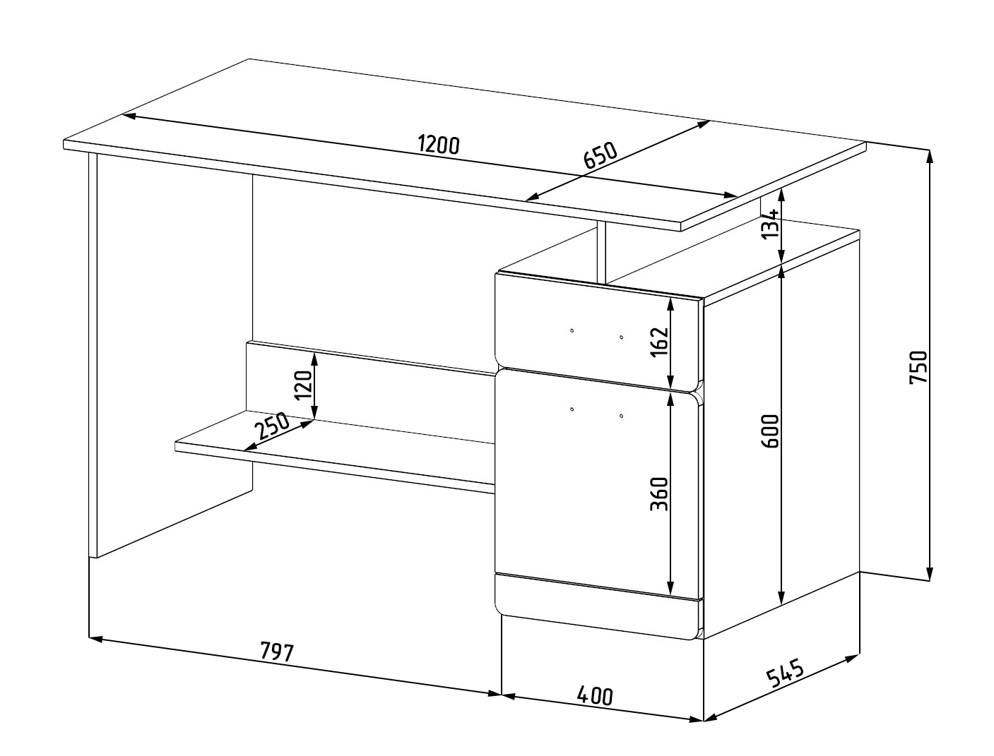 Габариты стола: ширина 1200 х глубина 650 х высота 750
