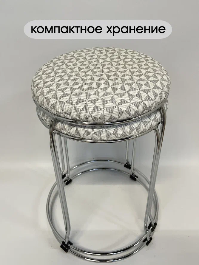 * Специальная конструкция ножек делает табурет устойчивым и не шатким, а также позволяет компактно сложить мебель «друг на друга».