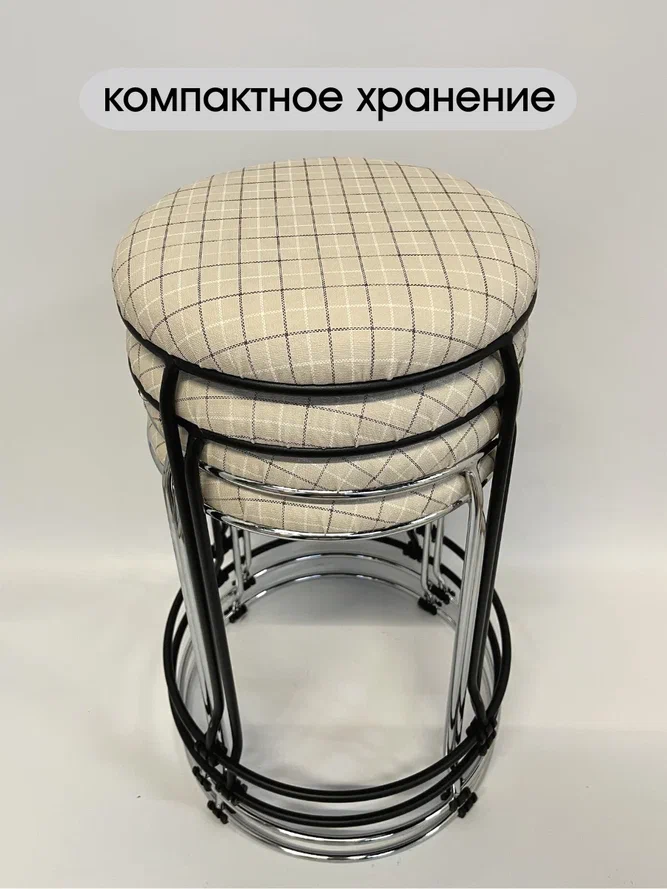 * Специальная конструкция ножек делает табурет устойчивым и не шатким, а также позволяет компактно сложить мебель «друг на друга».