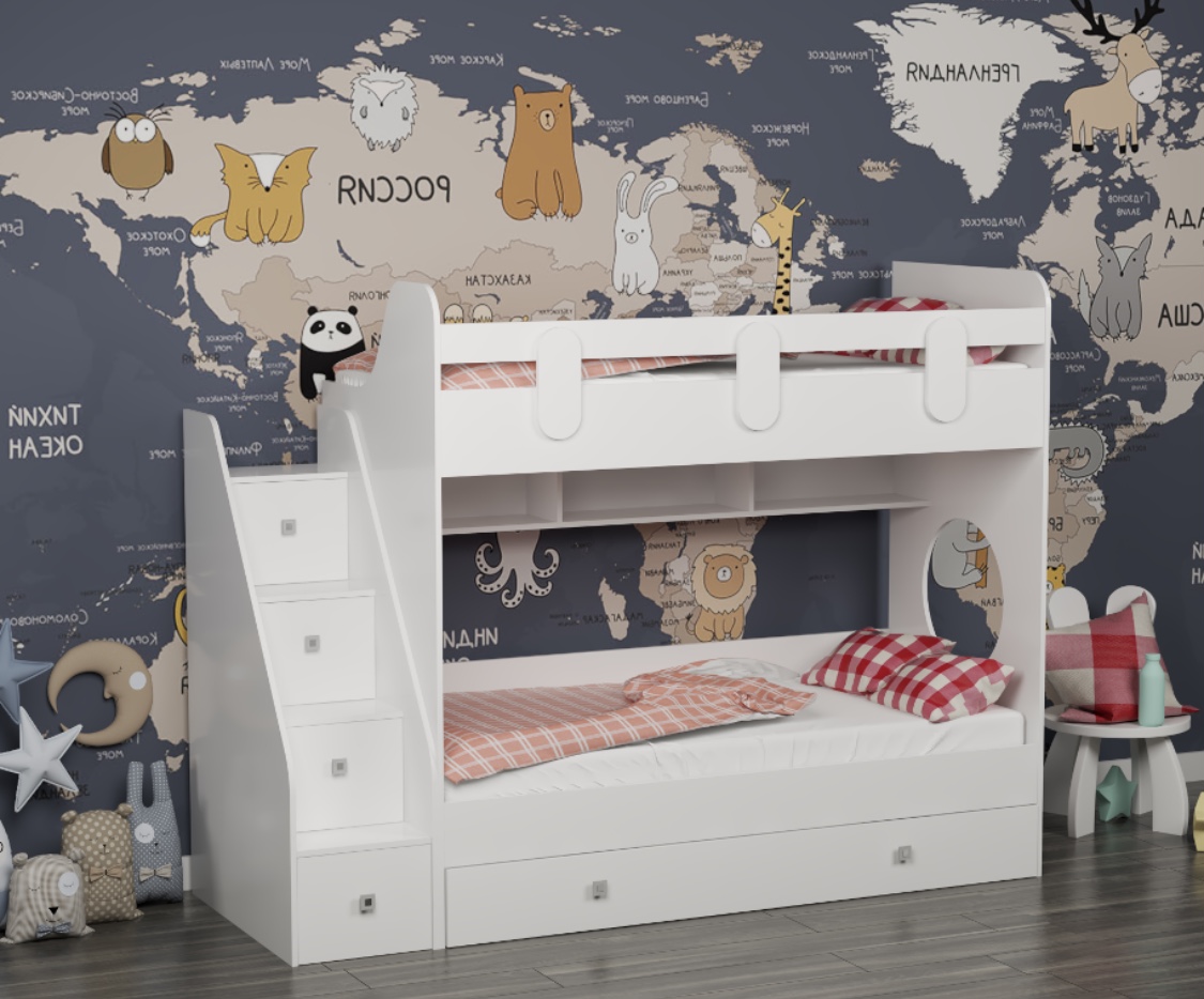Двухъярусная кровать Фортуна-3 с удобной, безопасной лестницей и комфортной высотой.