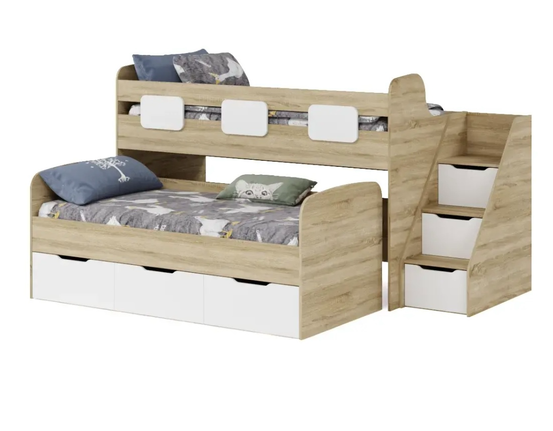 Вместо них - цельный и прочный настил из ЛДСП, который выдерживает сверхвысокую нагрузку и позволяет расположиться даже взрослому с ребенком.