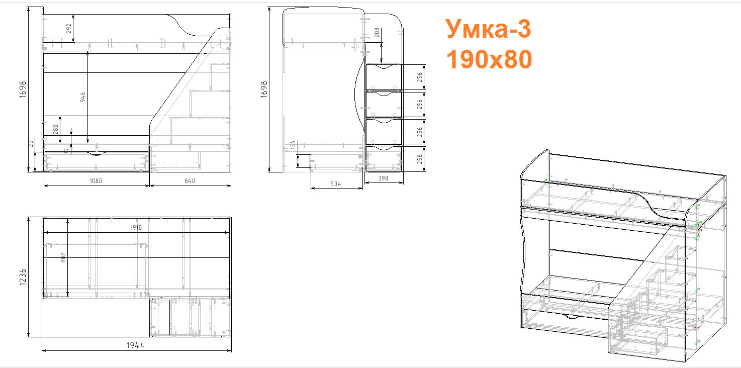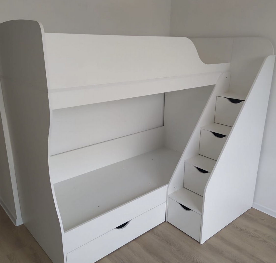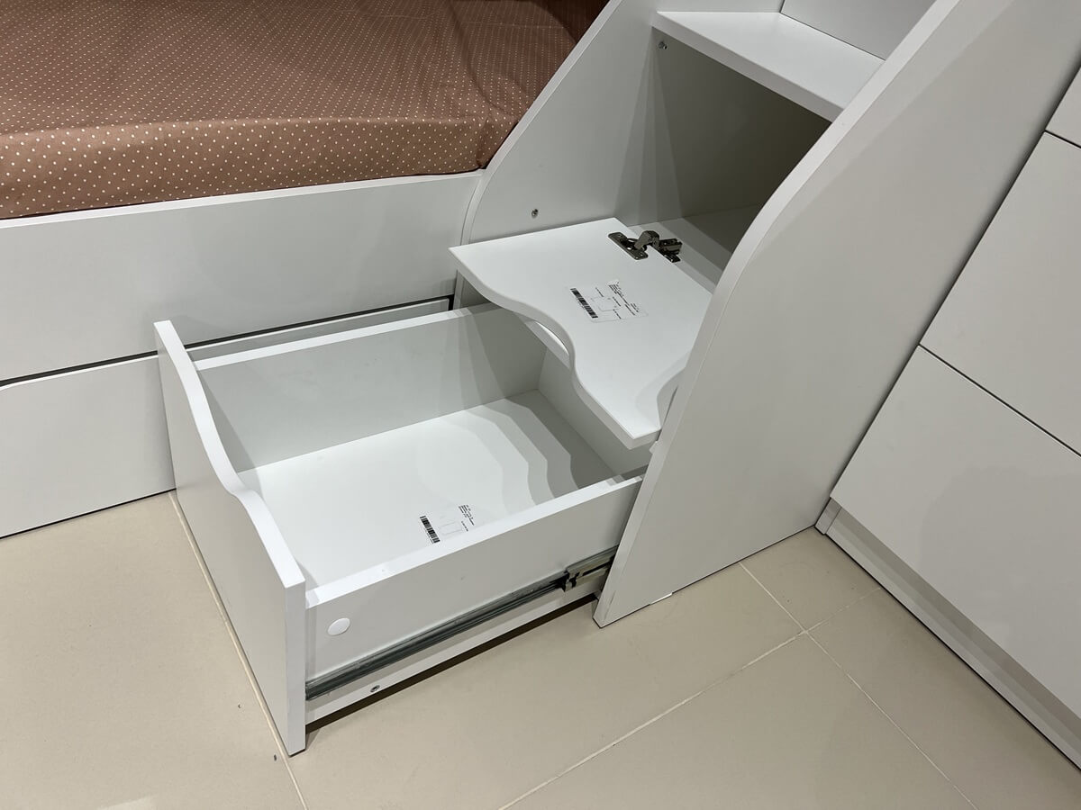 ЛДСП Е0,5. Толщина 16 мм. КРОВАТЬ ДОСТУПНА В ЦВЕТАХ: полностью белый, гаскон пайн + белый, дуб сонома + белый.