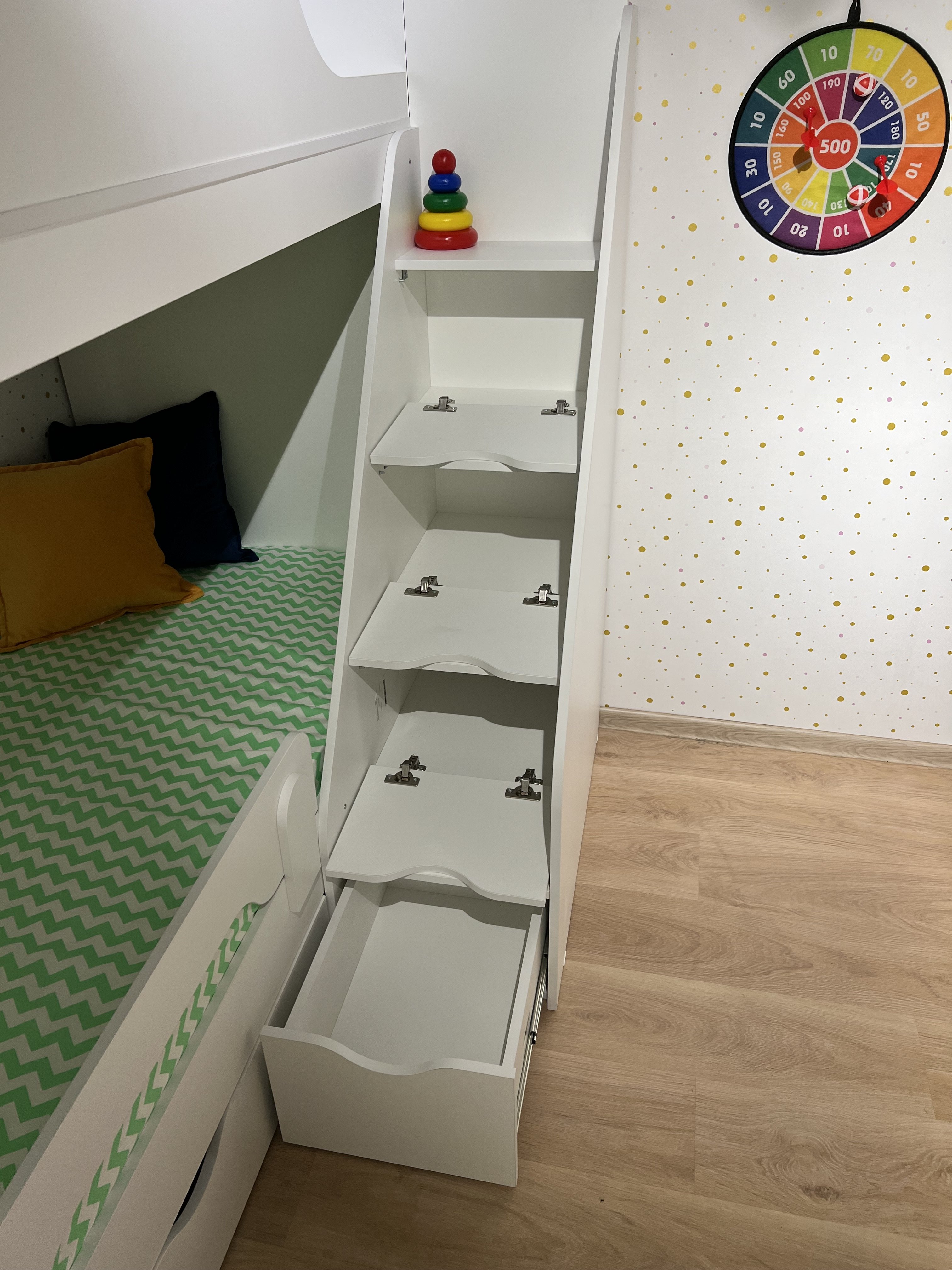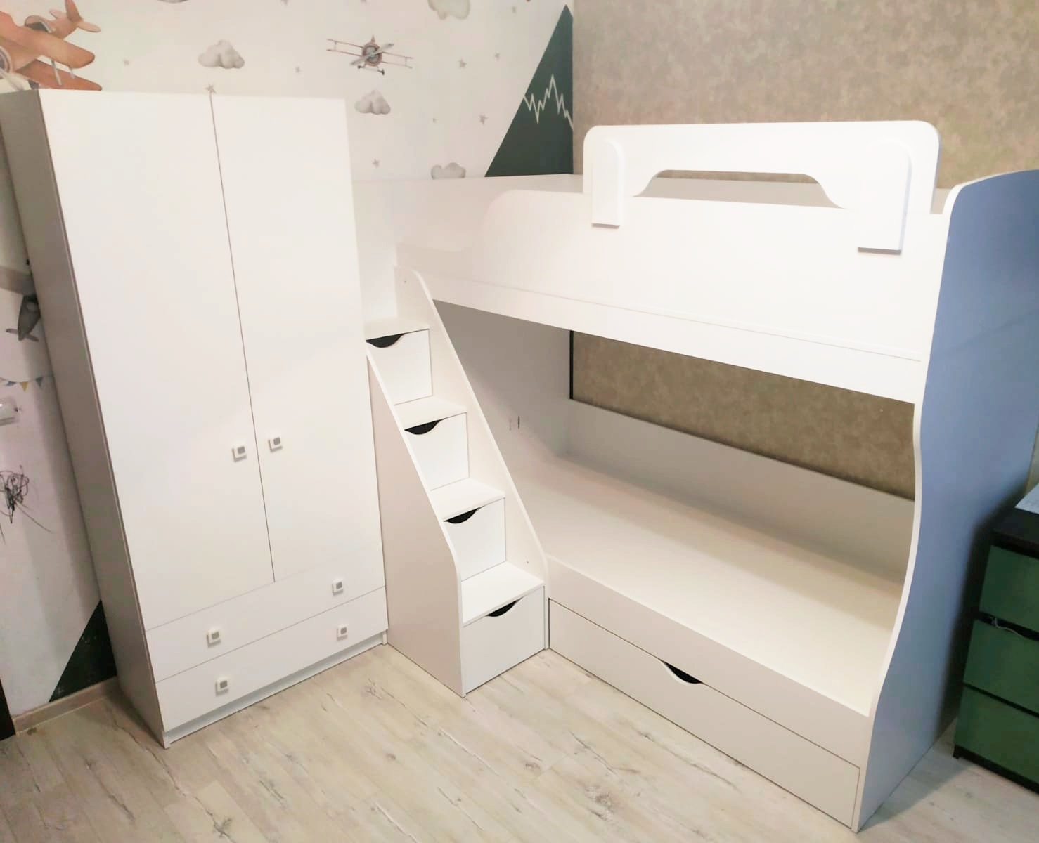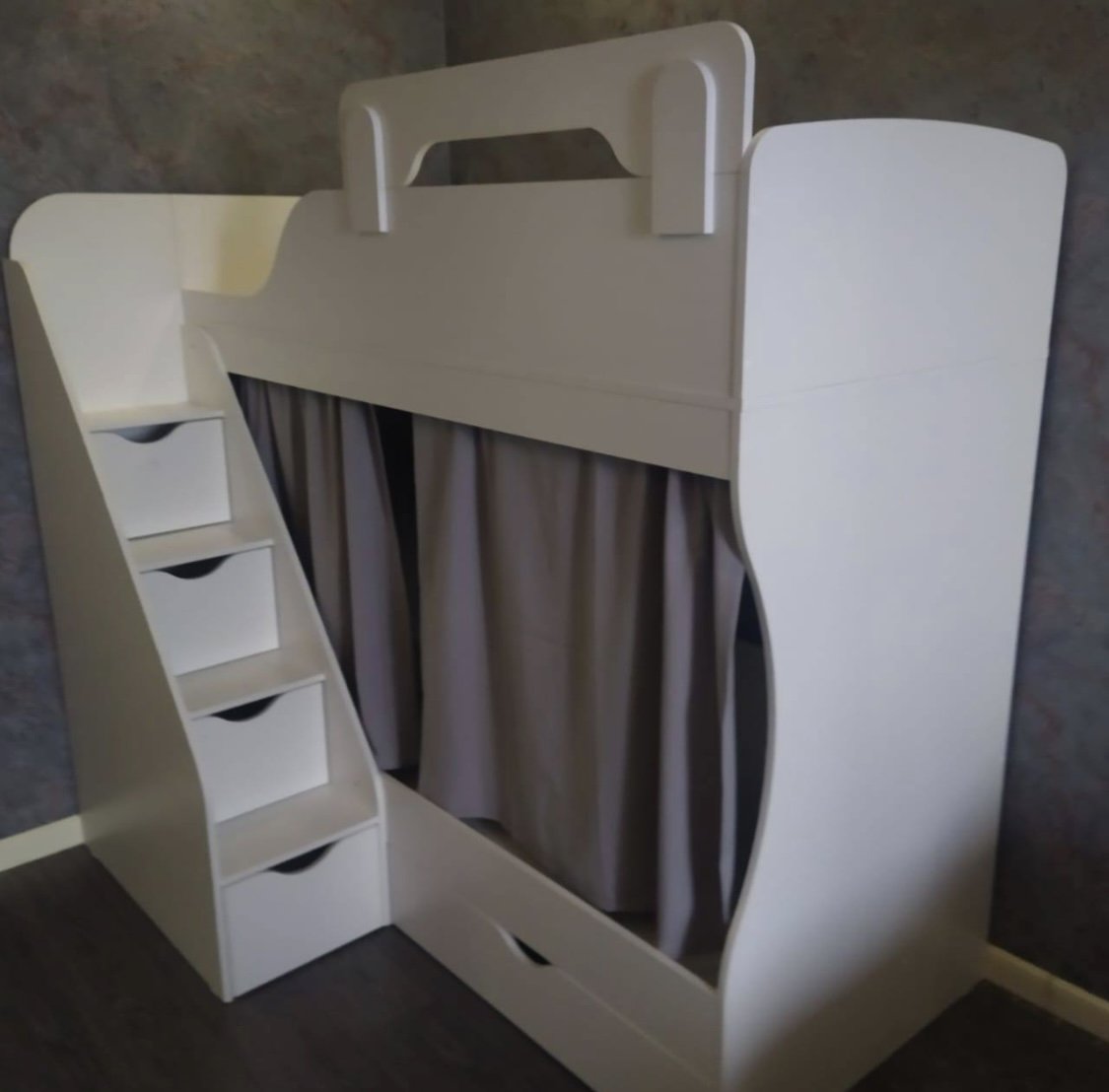 <virtues>Купили шкаф и кровать. Очень довольны. Ожидание и реальность совпали)! Дети уже попрыгали, полазили, тест драйв пройден. Лестница очень удобная. И самое главное наверху безопасно. Спасибо! </virtues>