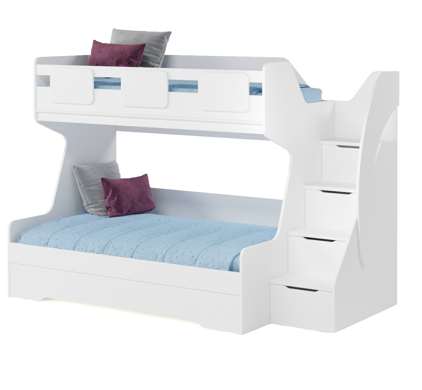 Увеличенное, просторное нижнее спальное место позволяет комфортно разместиться ребенку вместе со взрослым.