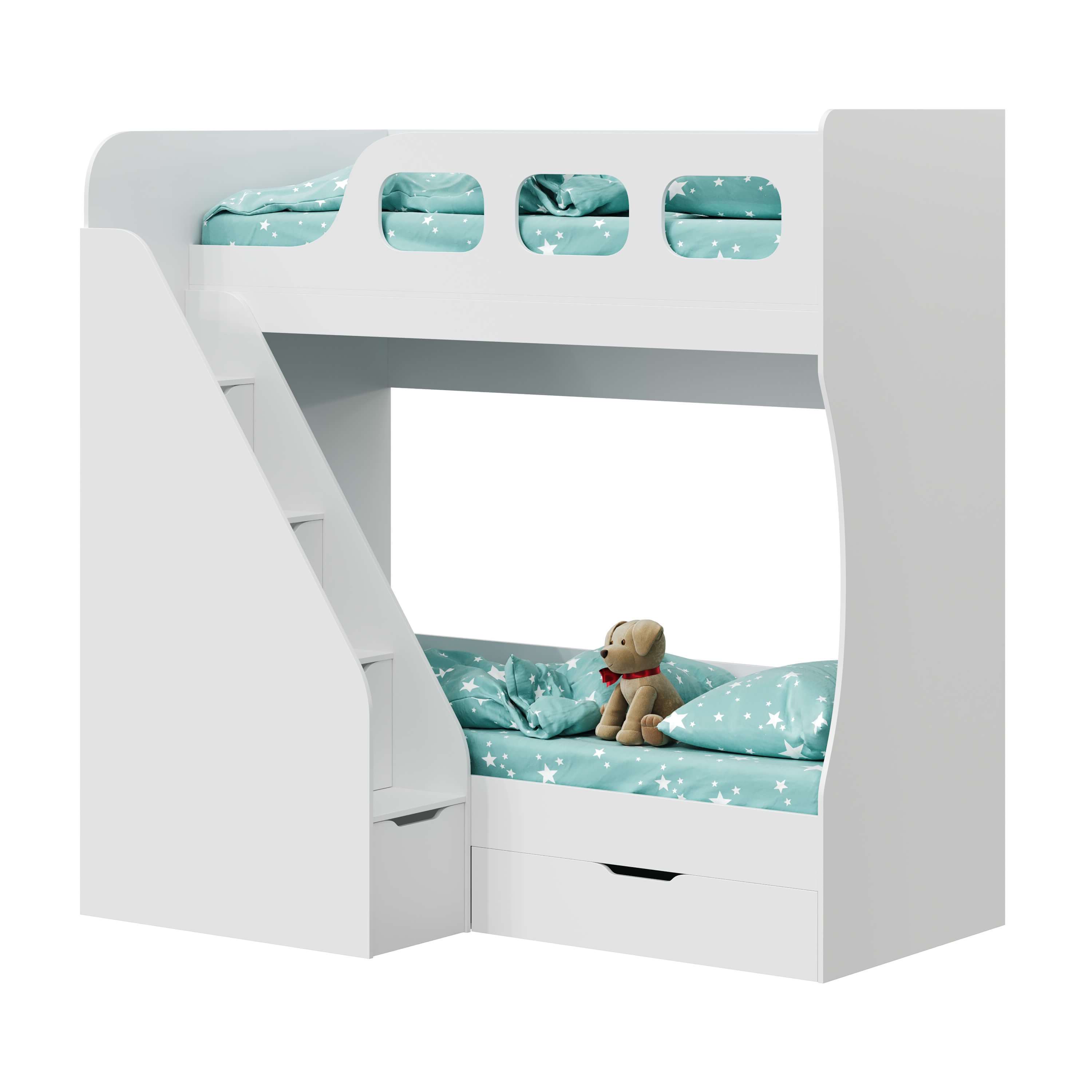 * В нижнюю кровать встроен выдвижной ящик для белья и игрушек.