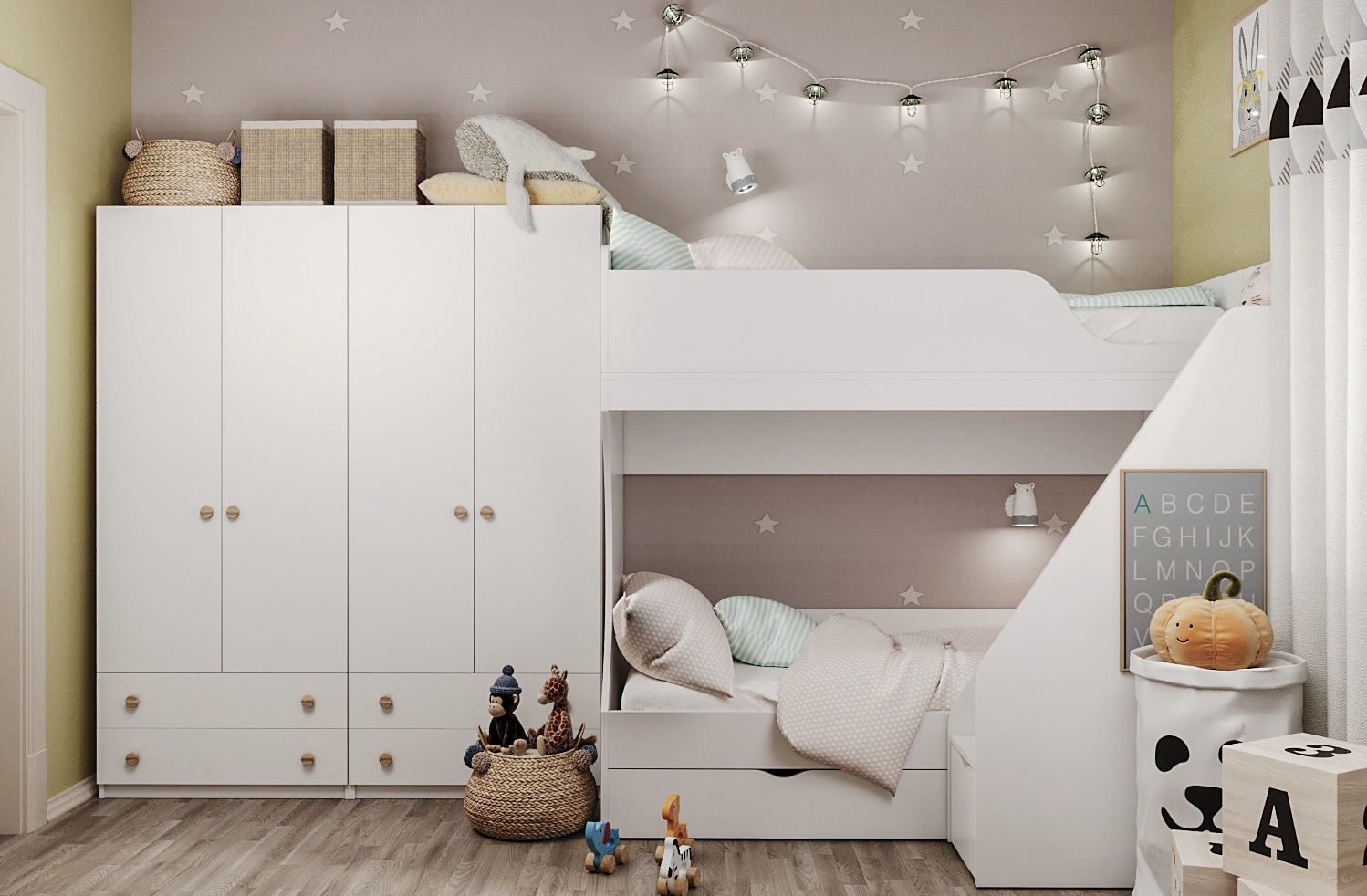 * Дополнительно к нижней кровати можно приобрести съемный бортик-ограничитель