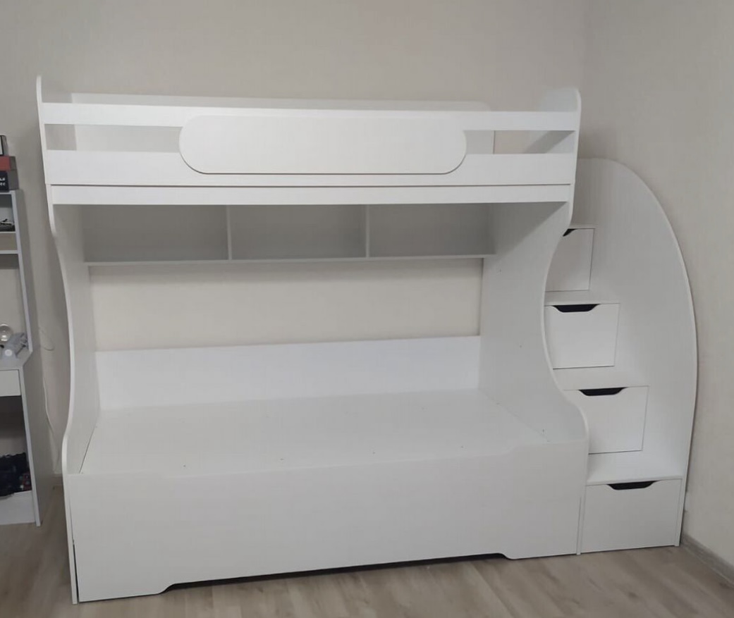Габариты кровати с учетом лестницы: ширина 2493, глубина 958, высота 1940 мм