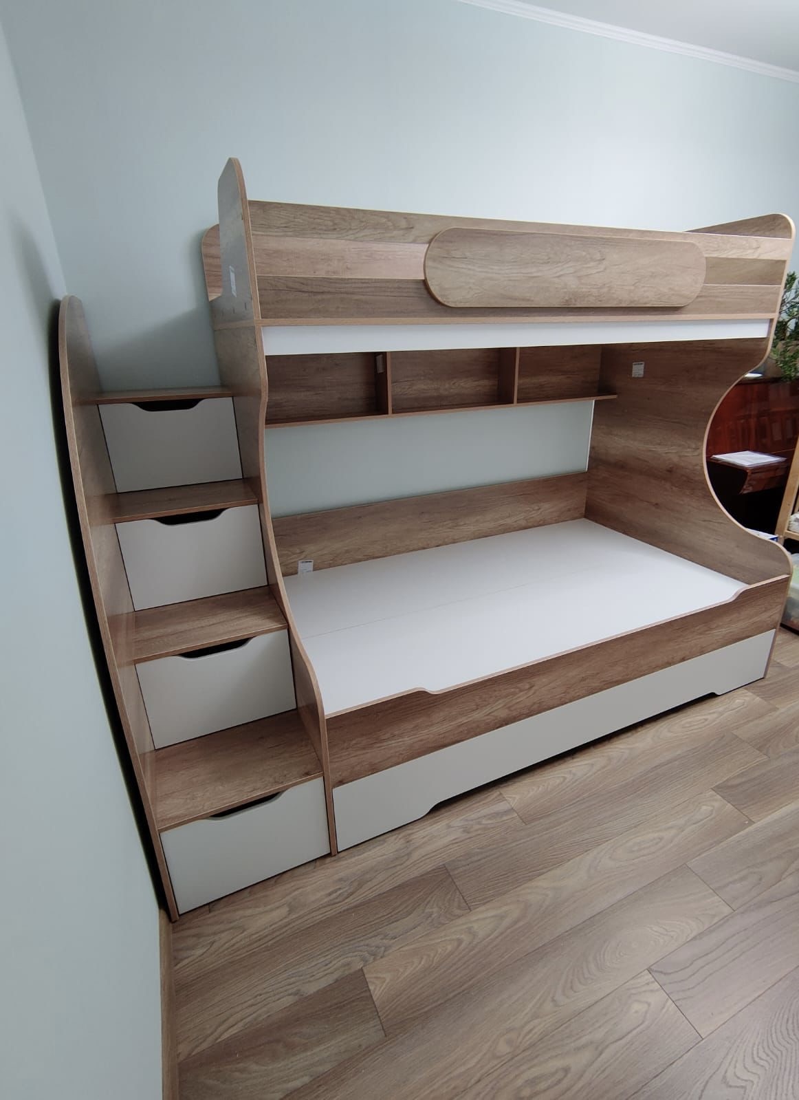<comment>Обновили детскую. Долго выбирали кровать в разных магазинах. Здесь нашли именно то, что хотели. Большое спальное место внизу. Ящик выдвижной очень вместительный. Лестница удобная! Качество супер. В общем, ожидание и реальность совпали) </comment>