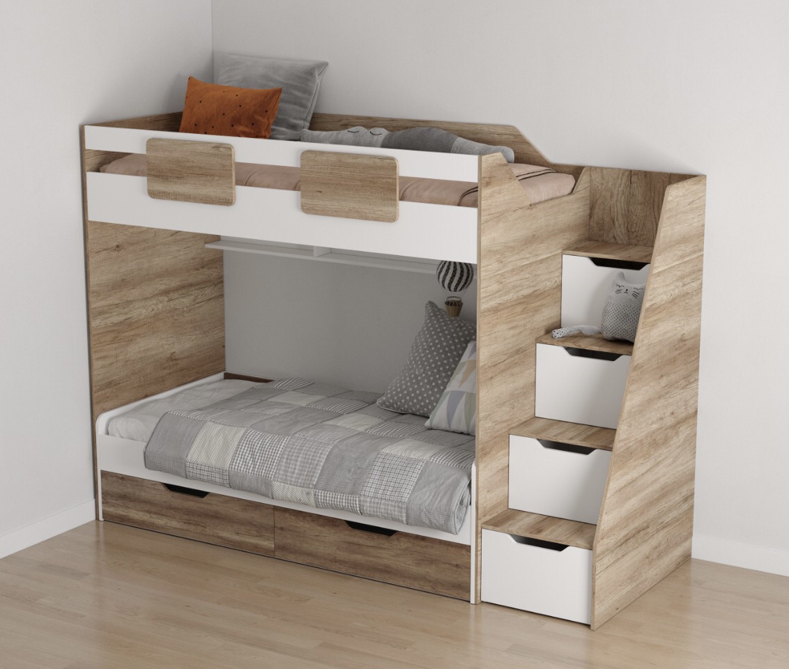Высокая нагрузка на спальные места. Высокий, безопасный борт. Прочные ящики! |