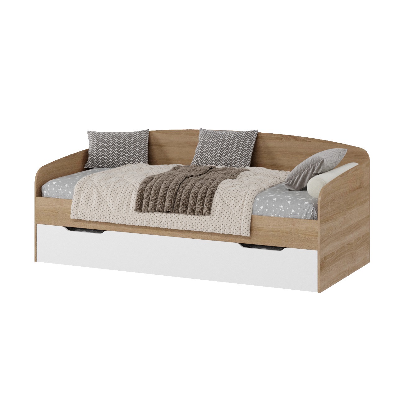 КРОВАТЬ ДОСТУПНА В РАСЦВЕТКАХ: дуб сонома + белый, вяз швейцарский, полностью белый.