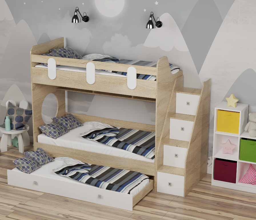 Двухъярусная кровать Фортуна-3 с удобной, безопасной лестницей и комфортной высотой.