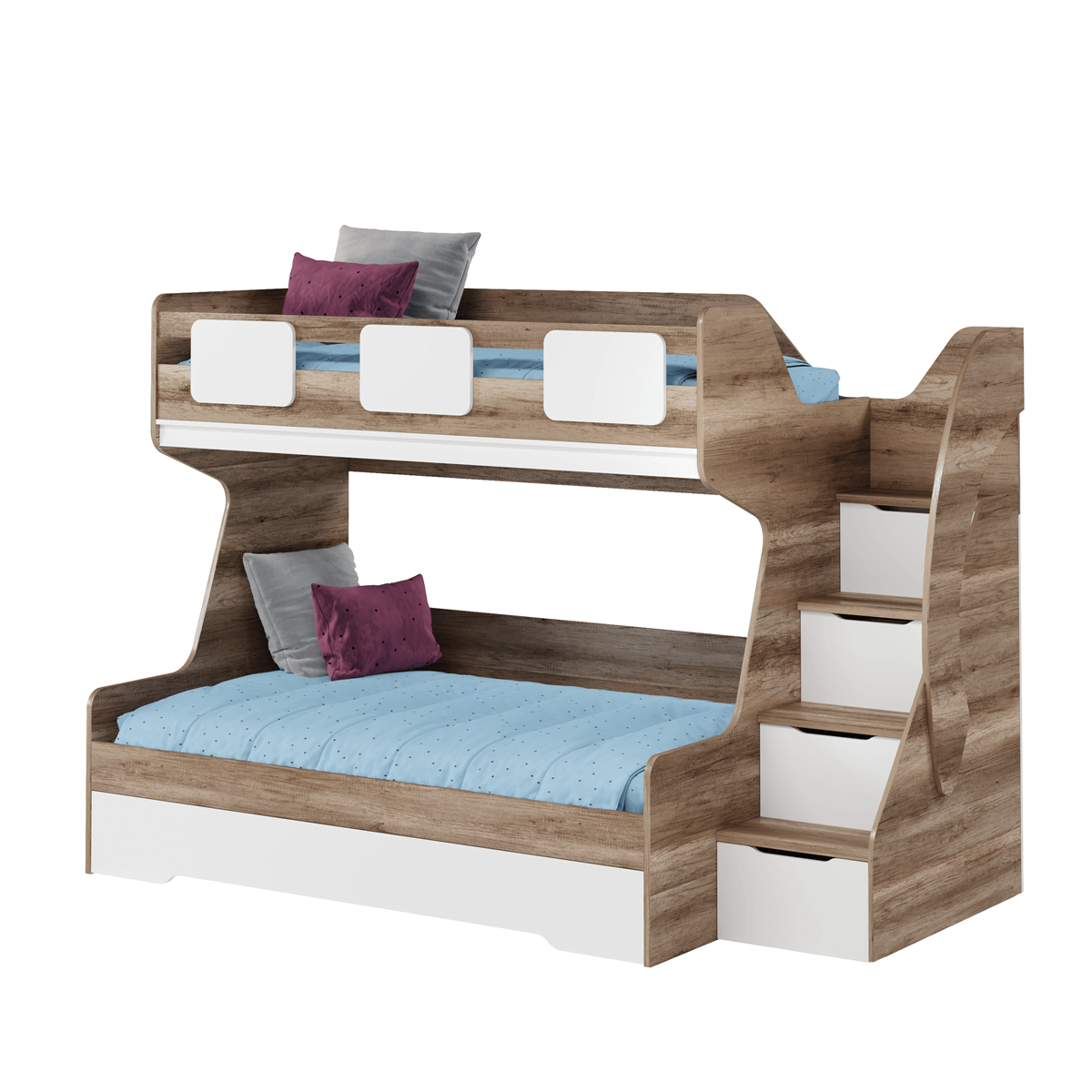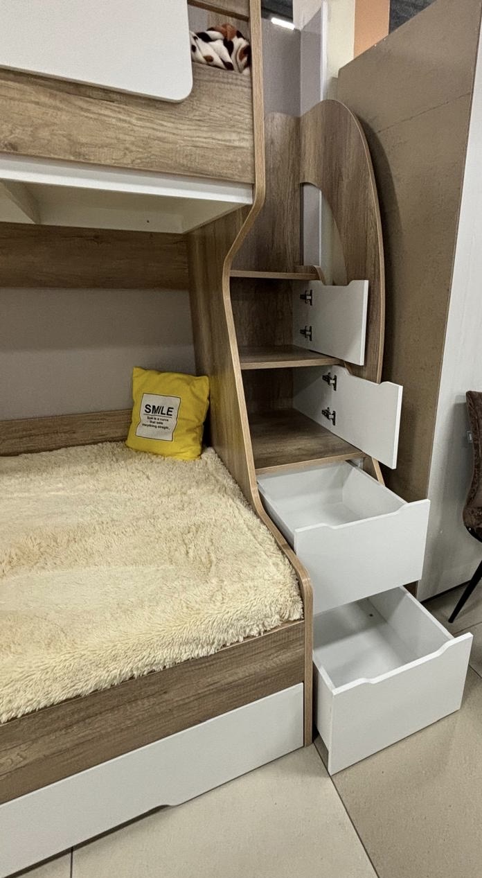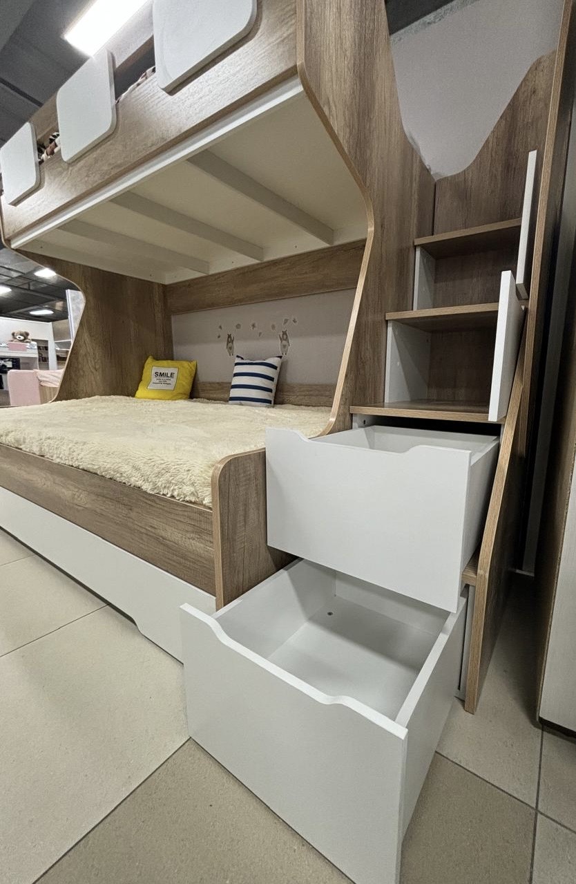 Увеличенное, просторное нижнее спальное место позволяет комфортно разместиться ребенку вместе со взрослым.