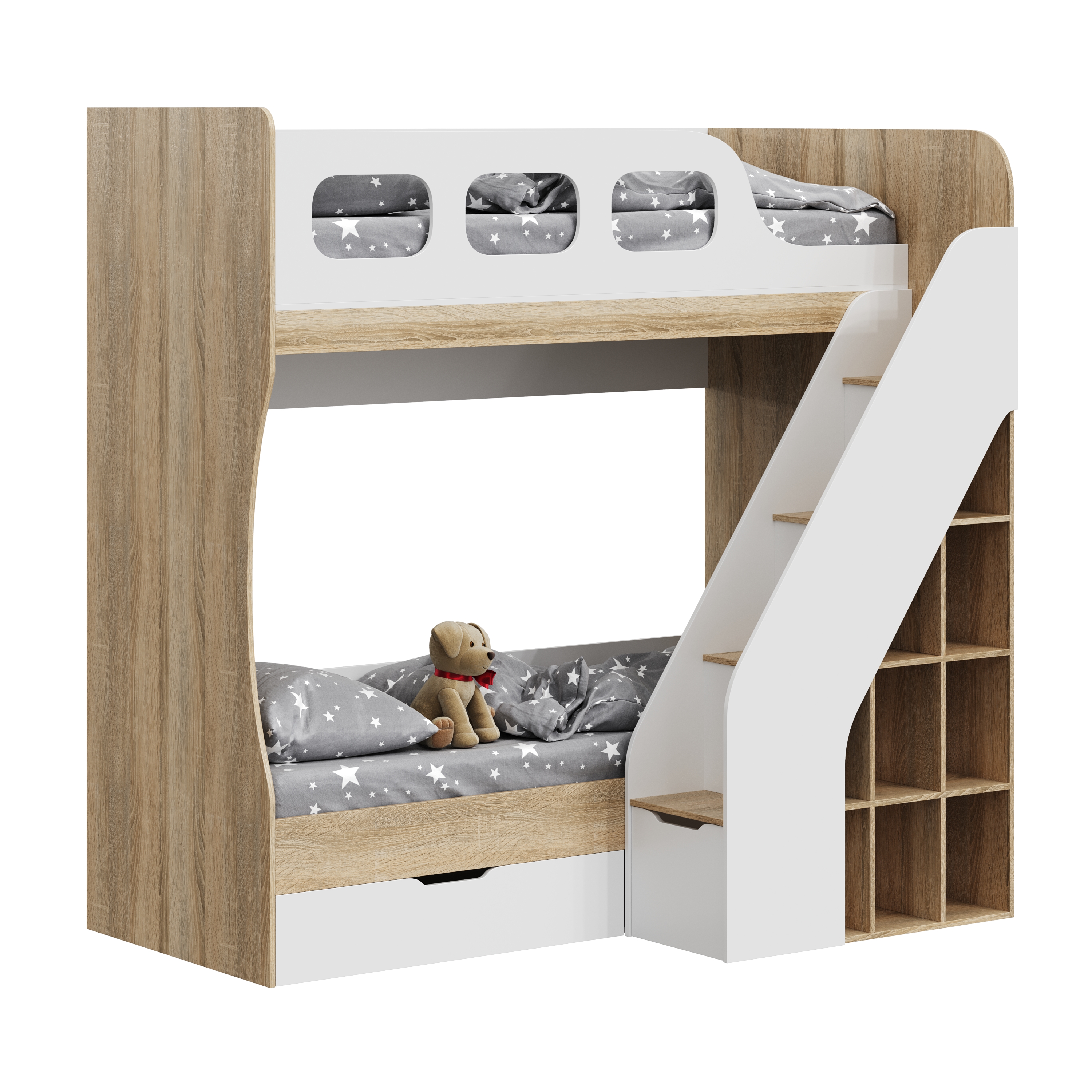 * Дополнительно к нижней кровати можно приобрести съемный бортик-ограничитель