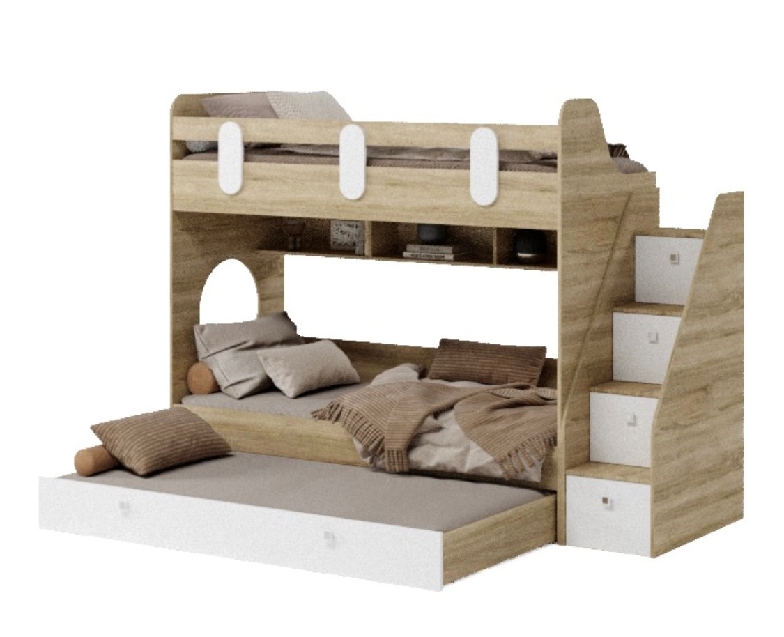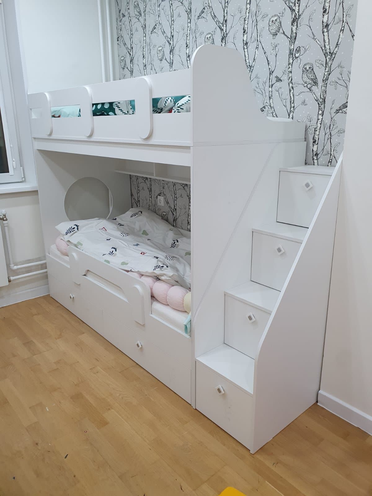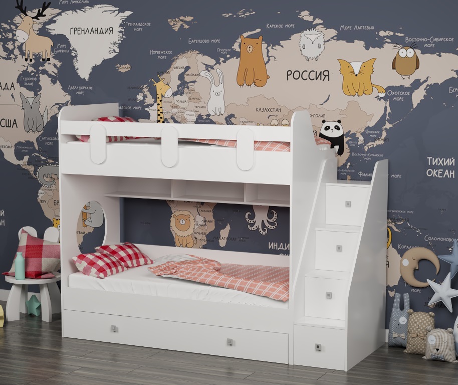 Высокая нагрузка на спальные места. Безопасный, высокий бортик. Прочные ящики! |