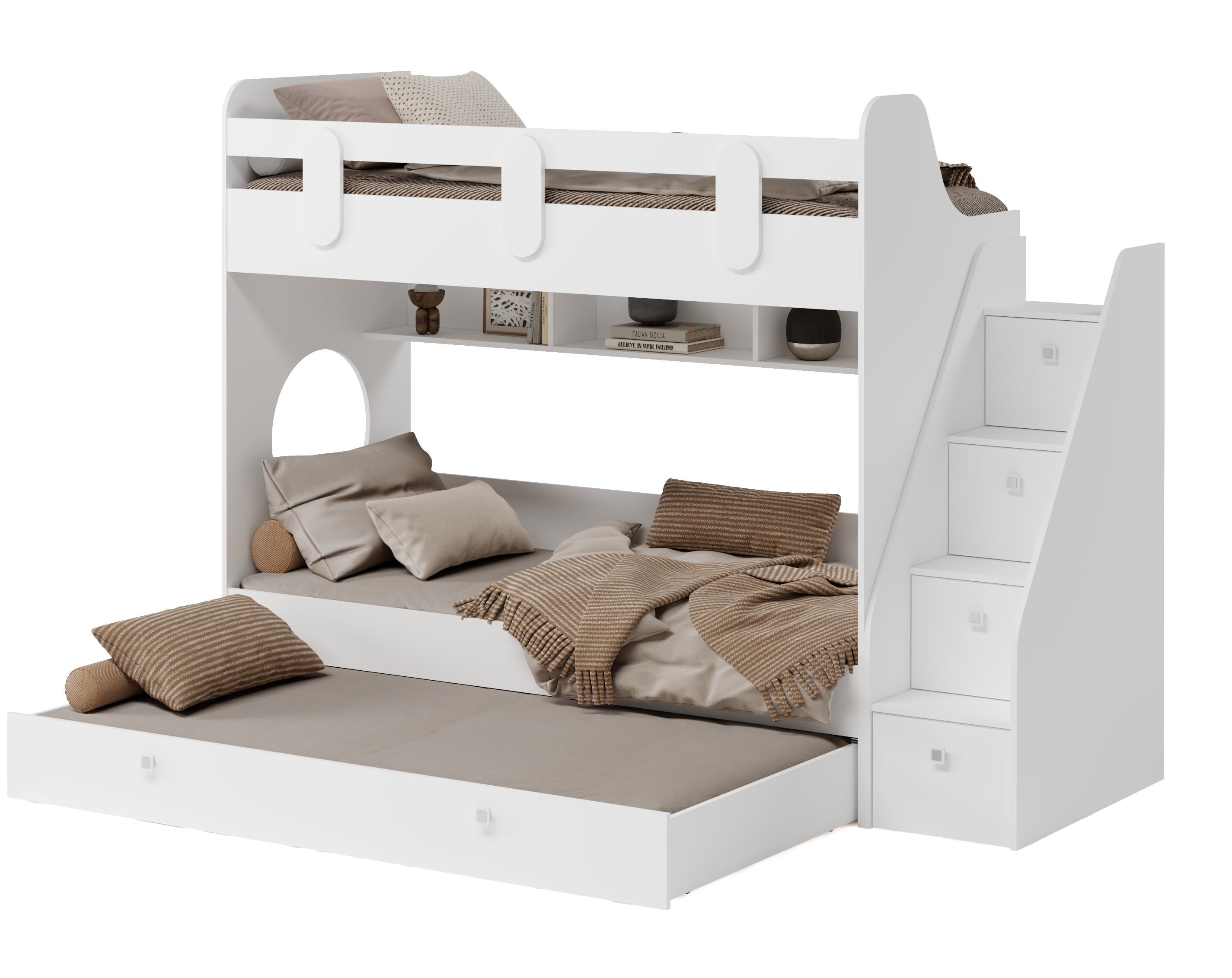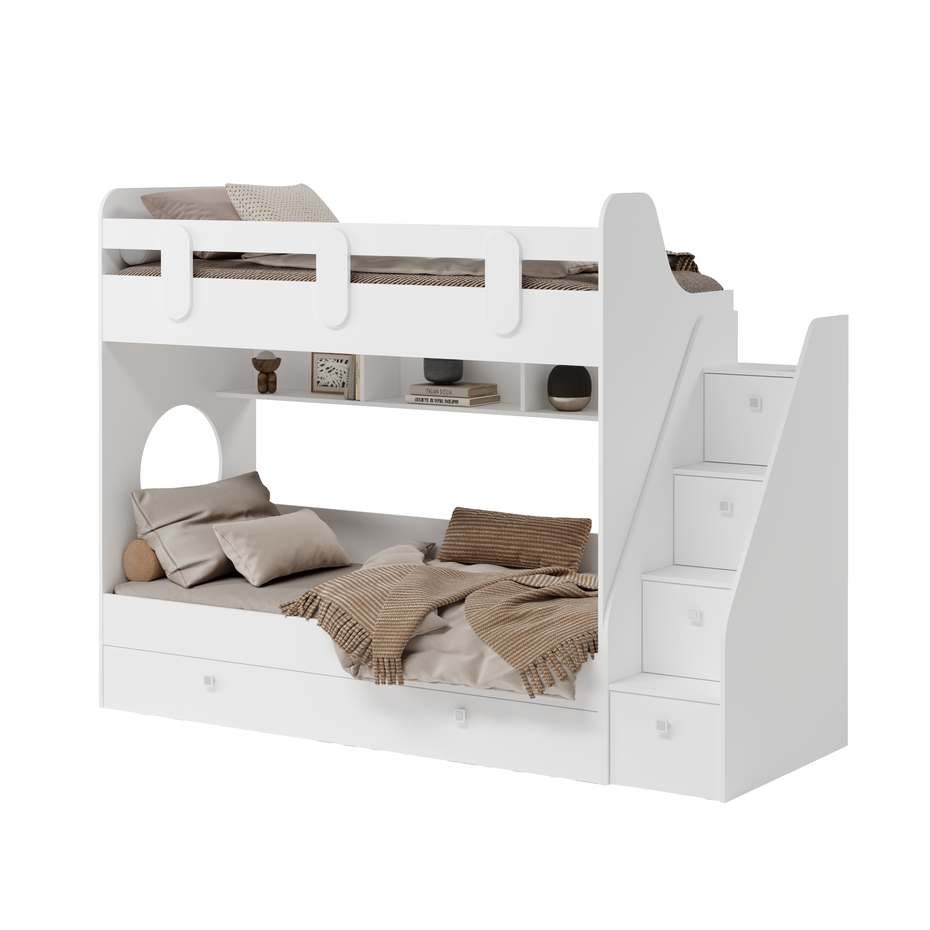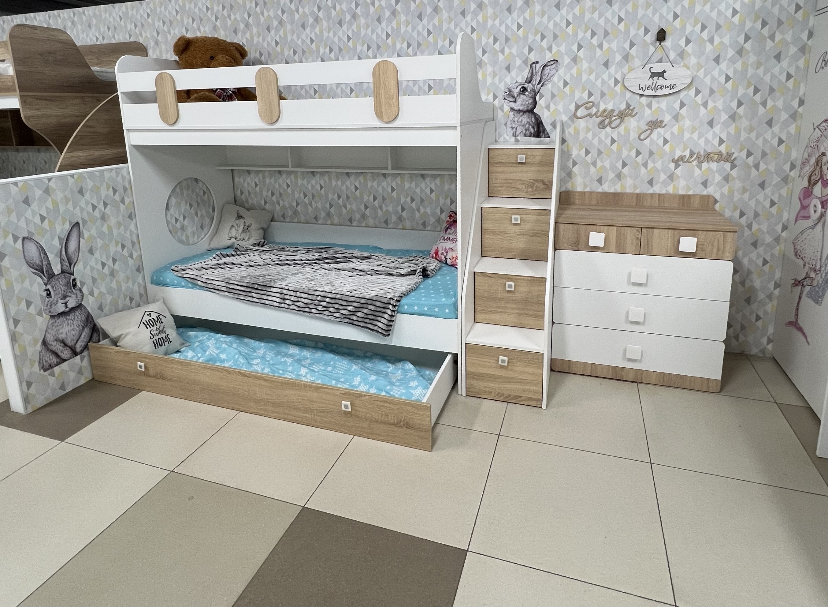 Высокая нагрузка на спальные места. Безопасный, высокий бортик. Прочные ящики! |