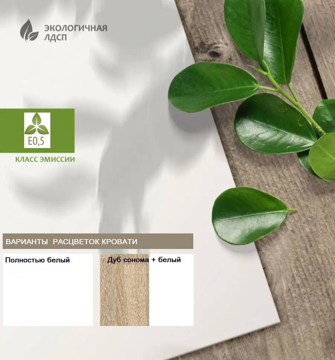 ЛДСП Е0,5. Толщина 16 мм. КРОВАТЬ ДОСТУПНА В ЦВЕТАХ: полностью белый, дуб сонома+белый |