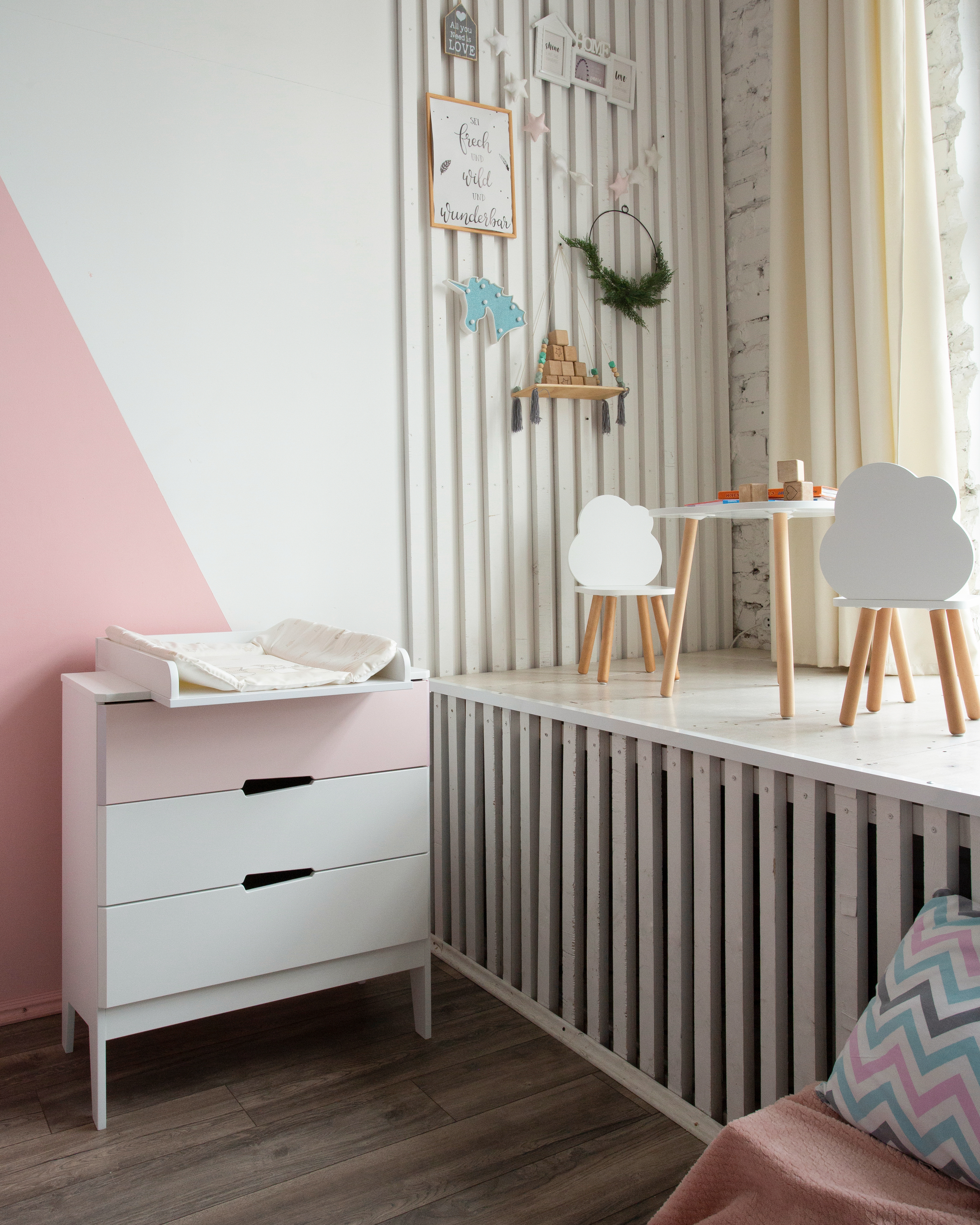 —Комод Aлберо белый/розовый (со съемным пеленальным столом)