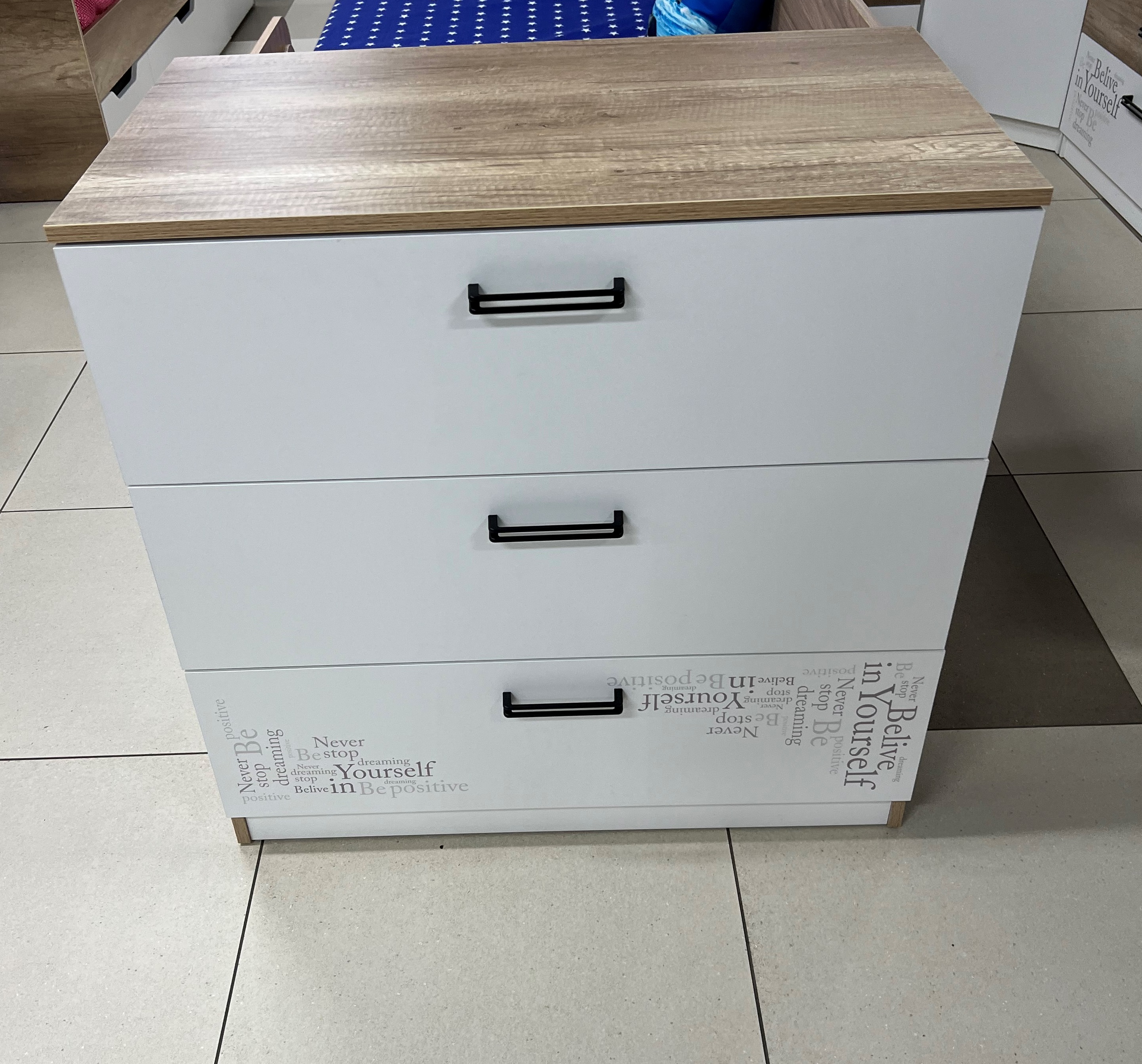 Мебель "Твой Стиль" выполнена из качественного, экологически чистого ЛДСП класса Е0,5 в сочетании цветов "дуб каньон + белый" и оформлена дизайнерским принтом.