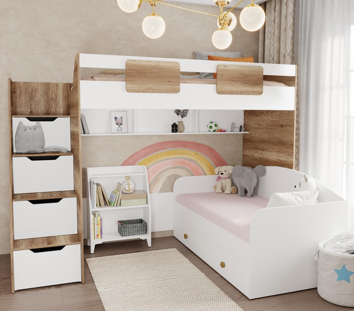 кровать-чердак Лайт Лофт + кровать Умка New + стеллаж Уют-5