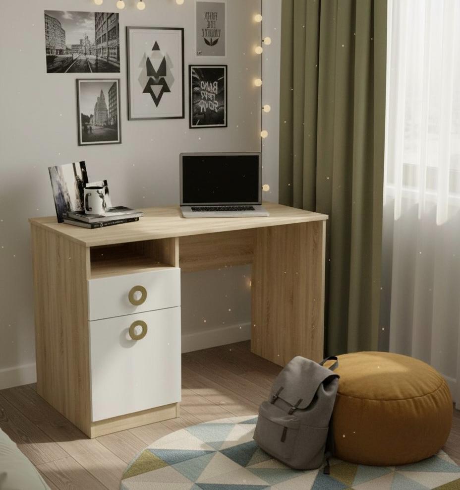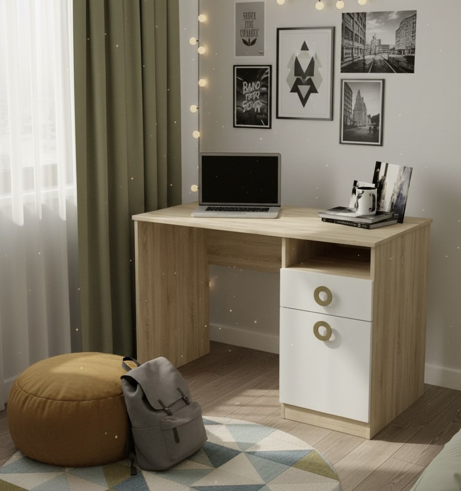 Выдвижной ящик стола изготовлен с применением метабоксов, что делает изделие надежным и практичным.