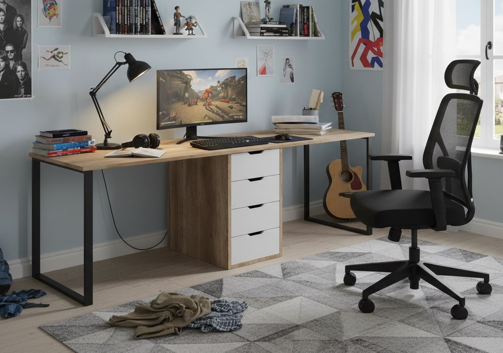 Стол Дуэт 2000 мм (дуб каньон + опоры черные). Столешница 22 мм от Династия Kids