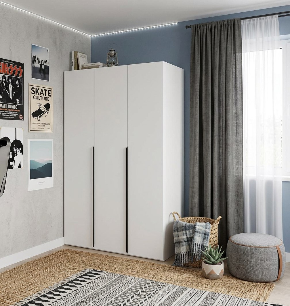 Трехдверный распашной шкаф коллекции мебели Брайт - функциональное решение для хранения одежды, обуви и аксессуаров.