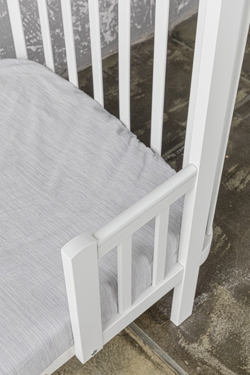 Бортики кроватки оборудованы полипропиленовыми накладками для защиты малыша и кроватки в период прорезывания зубов.