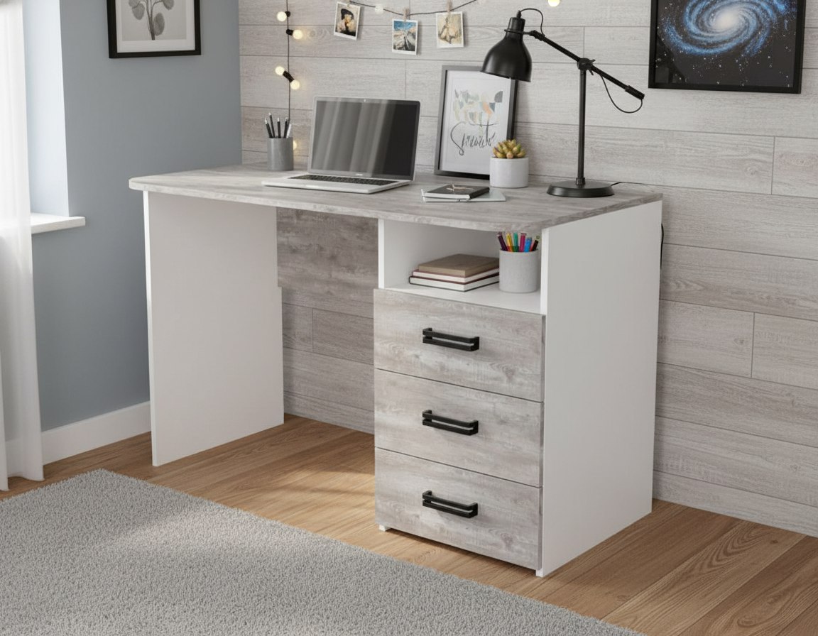 Мебель выполнена из качественного, экологически чистого ЛДСП класса Е0,5 в цветах бетон пайн + белый