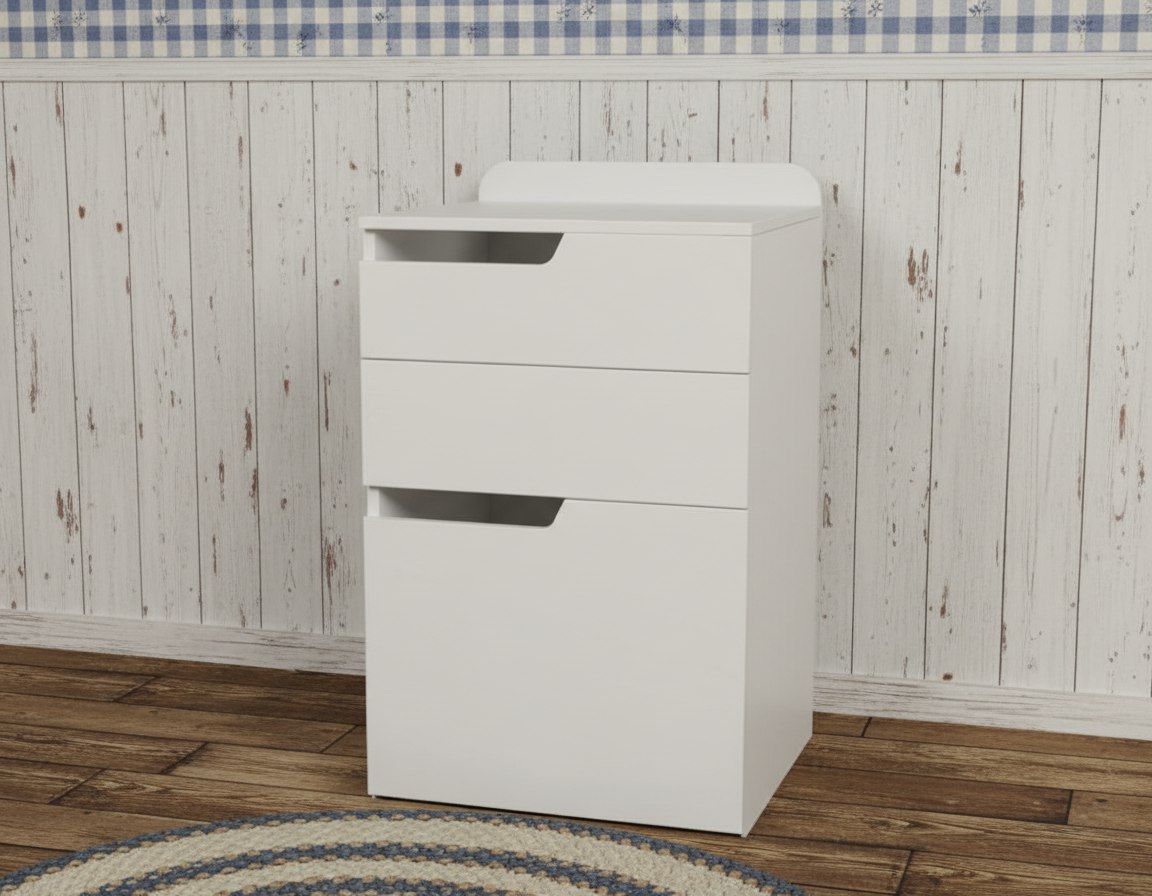Мебель выполнена из сертифицированного, качественного, экологически чистого ЛДСП класса Е0,5 в белом цвете.