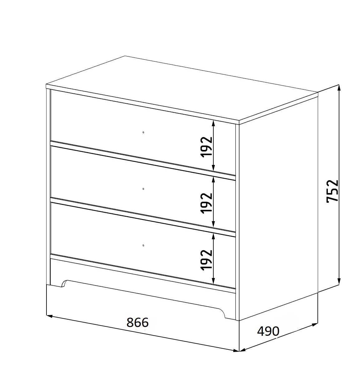 В комод встроены три выдвижных ящика на направляющих скрытого монтажа с доводчиками.
