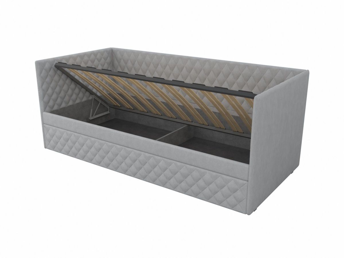 Представленная модель кровати оснащена ортопедическим основанием с подъемным механизмом.