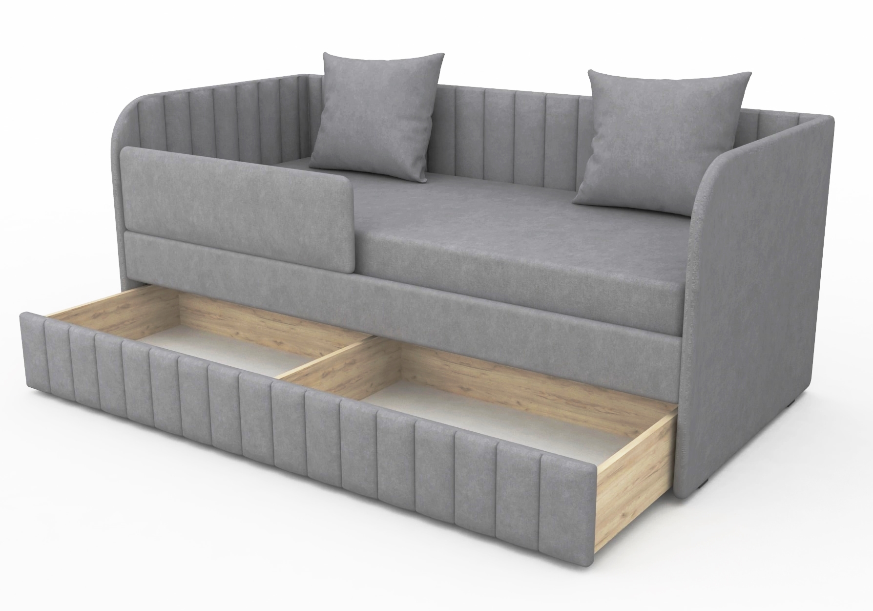 Кровать Гретта с модной вертикальной отстрочкой и закругленными боковыми бортиками.