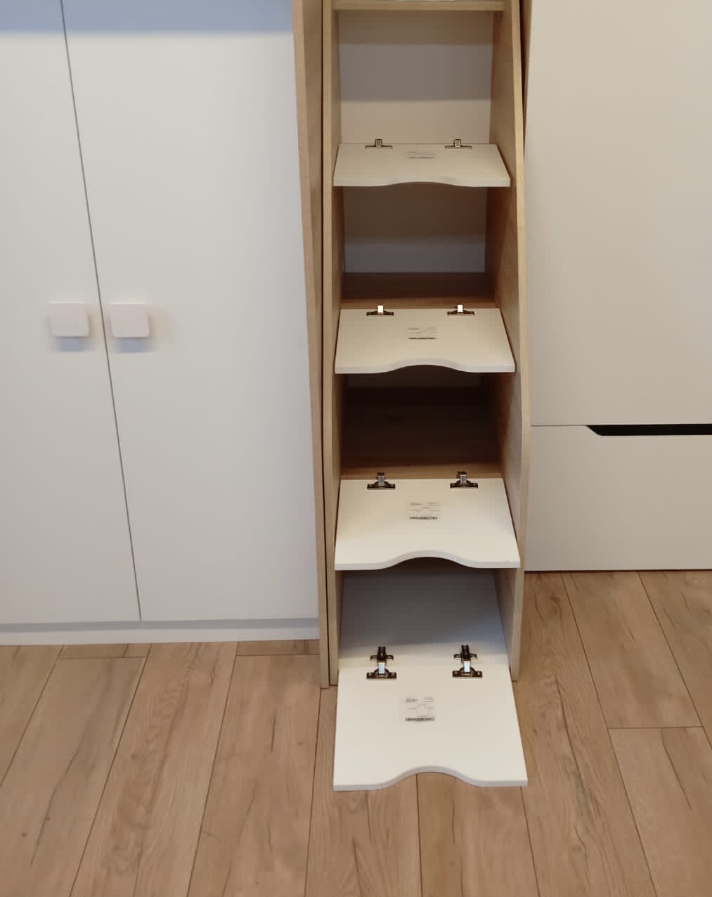 Ящики в лестнице на откидных петлях.