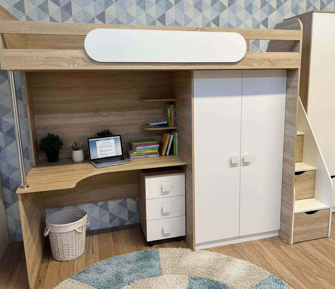 Наша кровать-чердак "Колледж" - это функциональность в ограниченном пространстве!