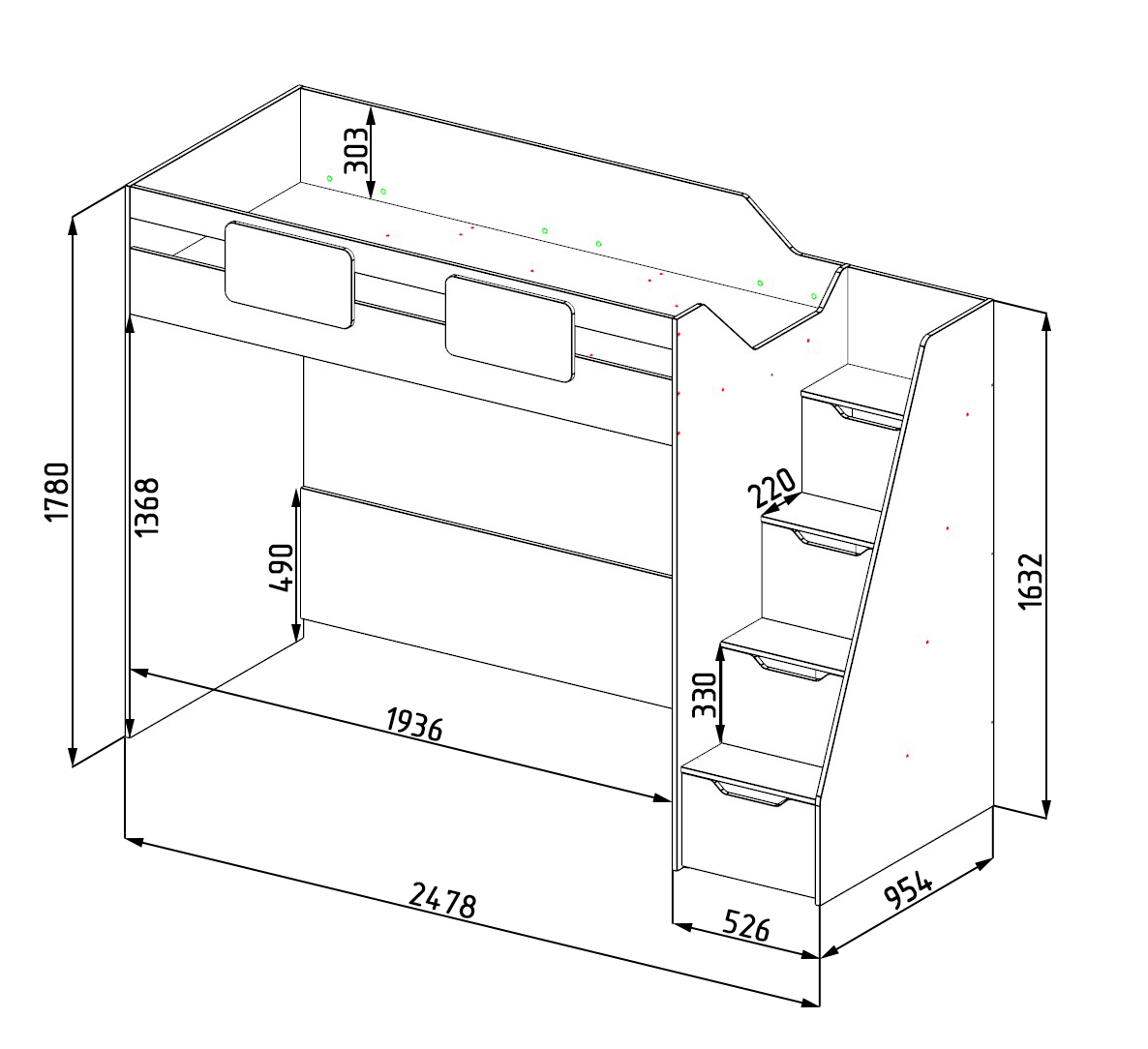 * В лестницу встроены выдвижные ящики для игрушек - удобно и практично.