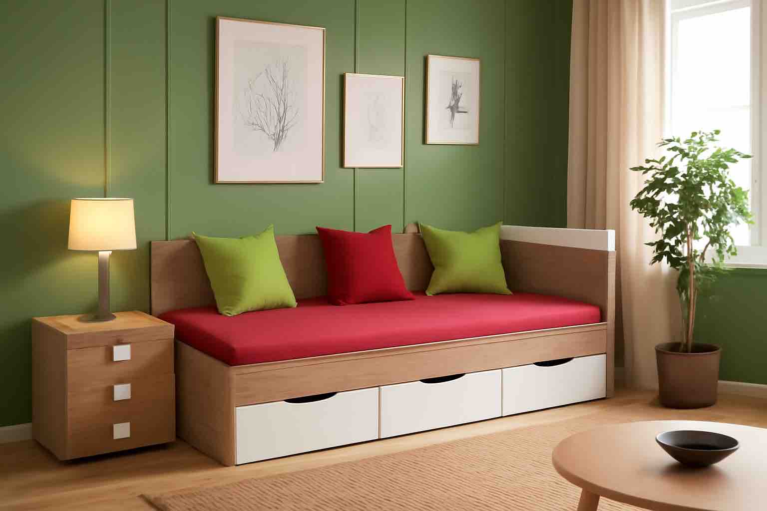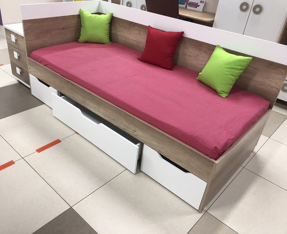 Высокая нагрузка на спальное место. Дно выдвижных ящиков прочное - выполнено из ЛДСП 16 мм (не ДВП!) |