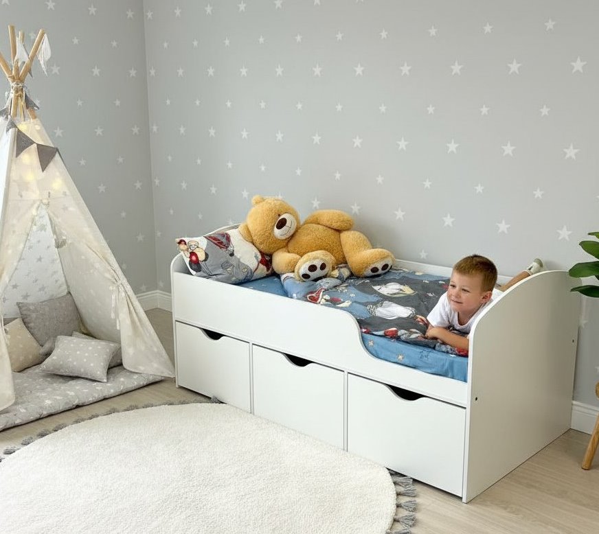 Три вместительных выдвижных ящика помогут всегда хранить личные вещи и игрушки ребенка в собранном виде.