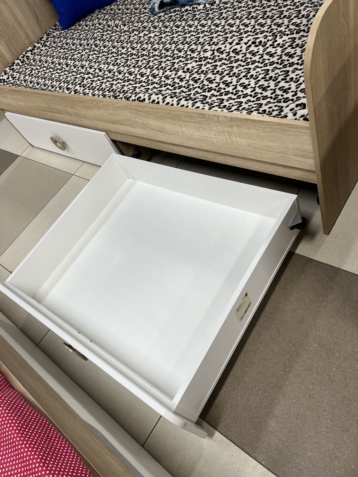 Ящики в кровати полного выдвижения на опорных колесах.