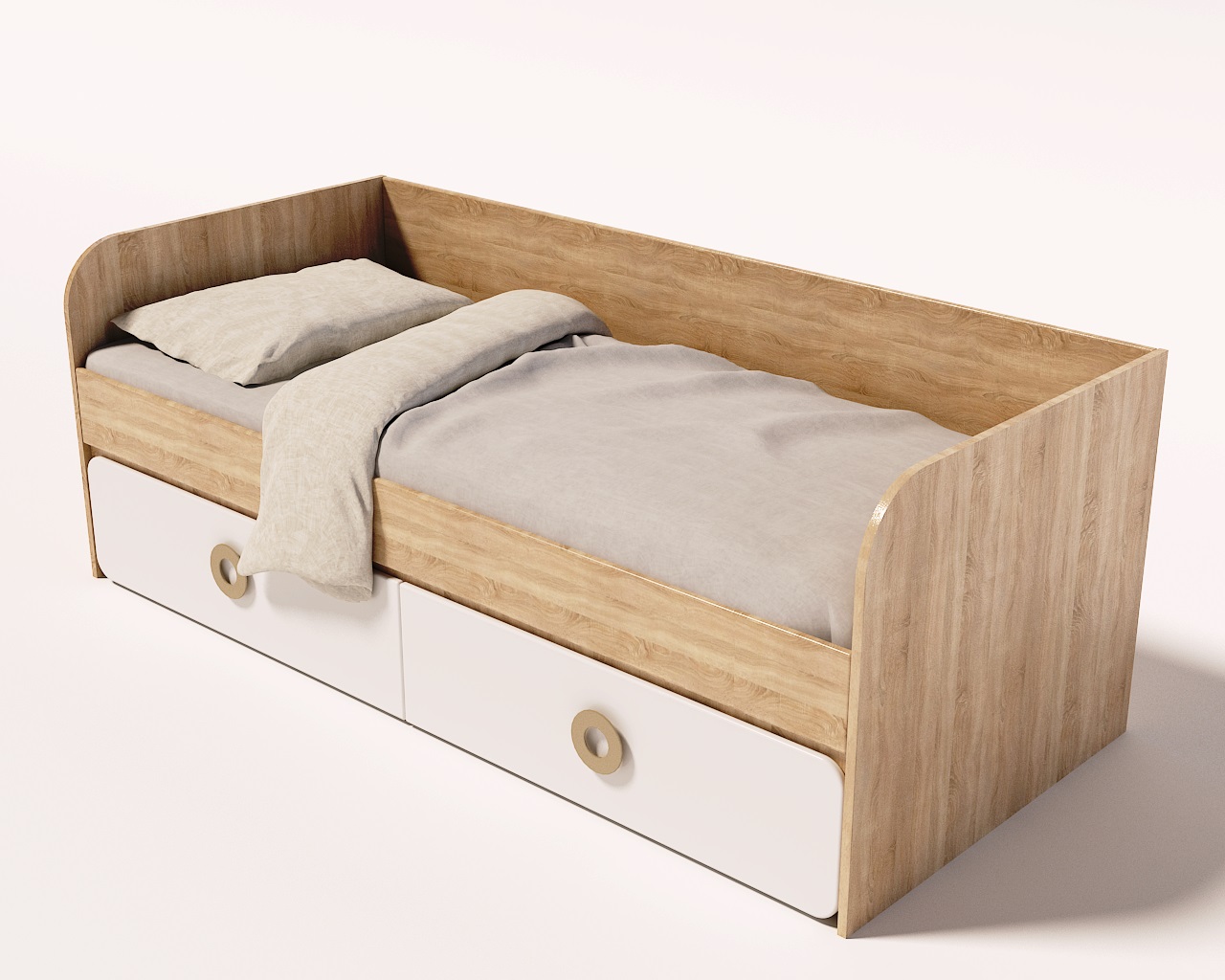 Торцы кровати закруглены и защищены ударопрочной кромкой ПВХ