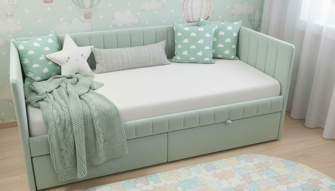 Кровать разработана с учетом требований к безопасности ребенка, сглаженные, мягкие углы, прочная конструкция и безопасные, гипоаллергенные материалы.
