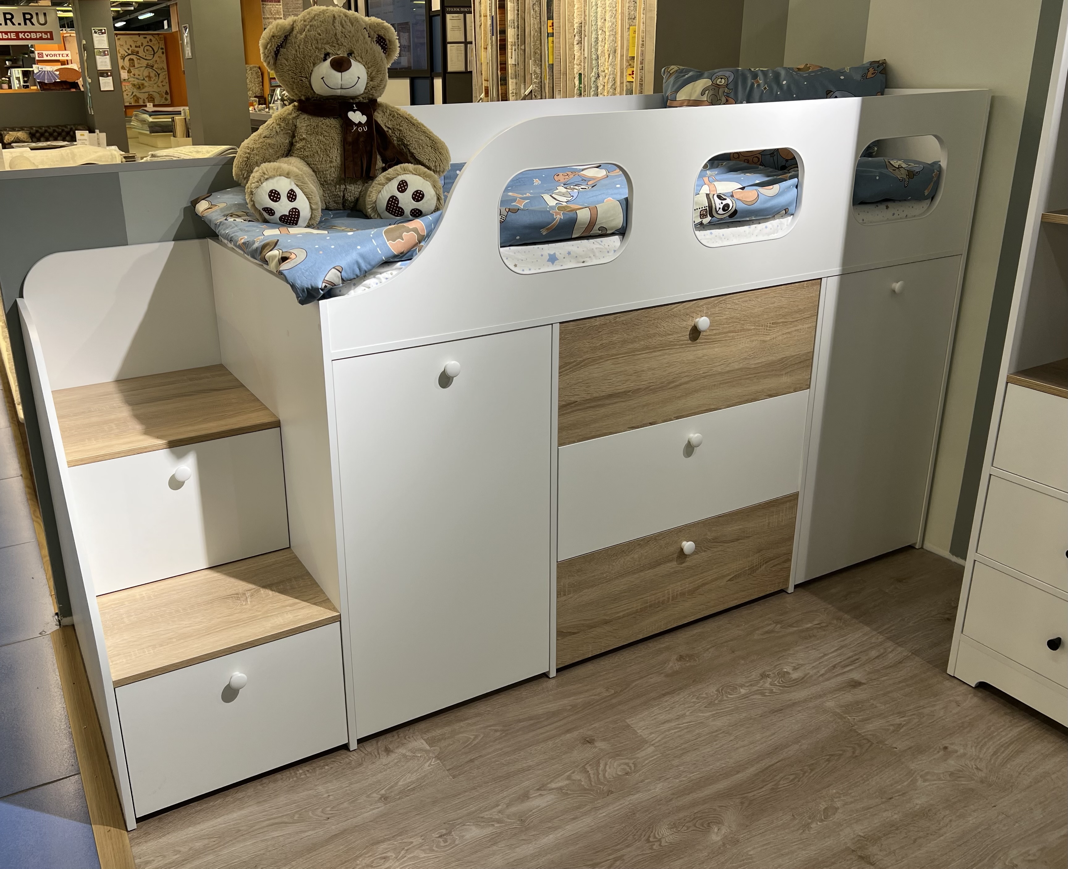 Цвет—Кровать-чердак Хэппи (цвет Дуб сонома+белый)