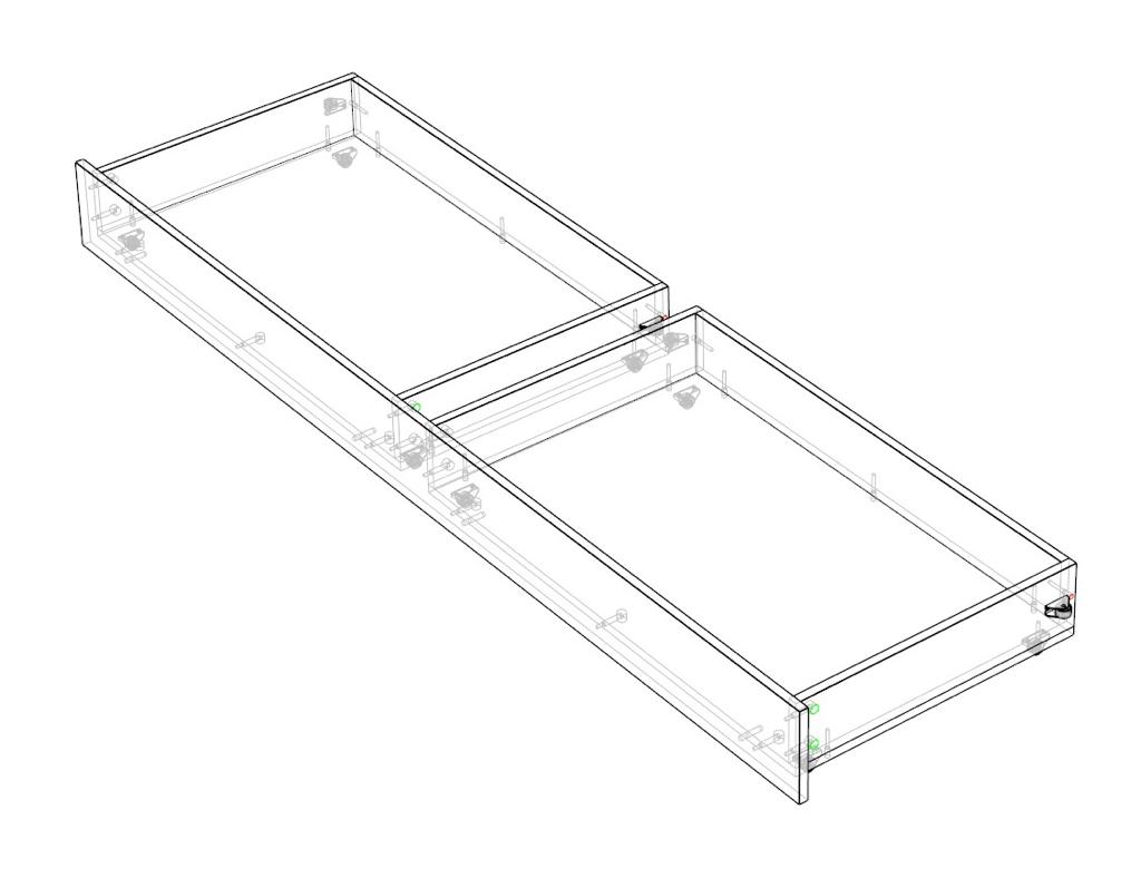В кровать встроен выдвижной полновыкатной ящик на выкатных роликах.