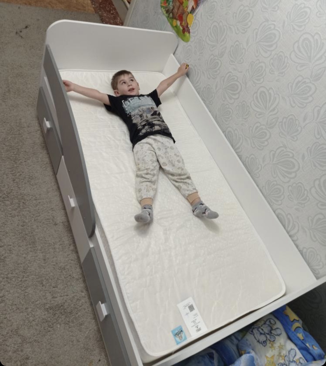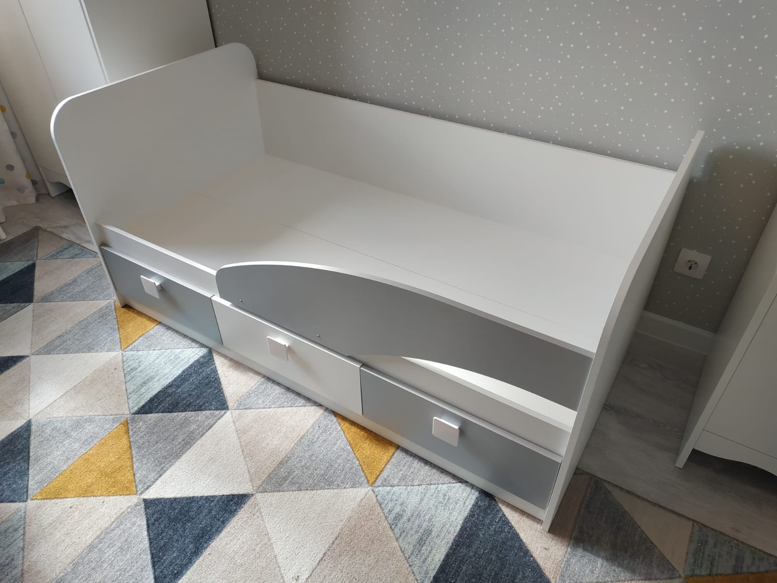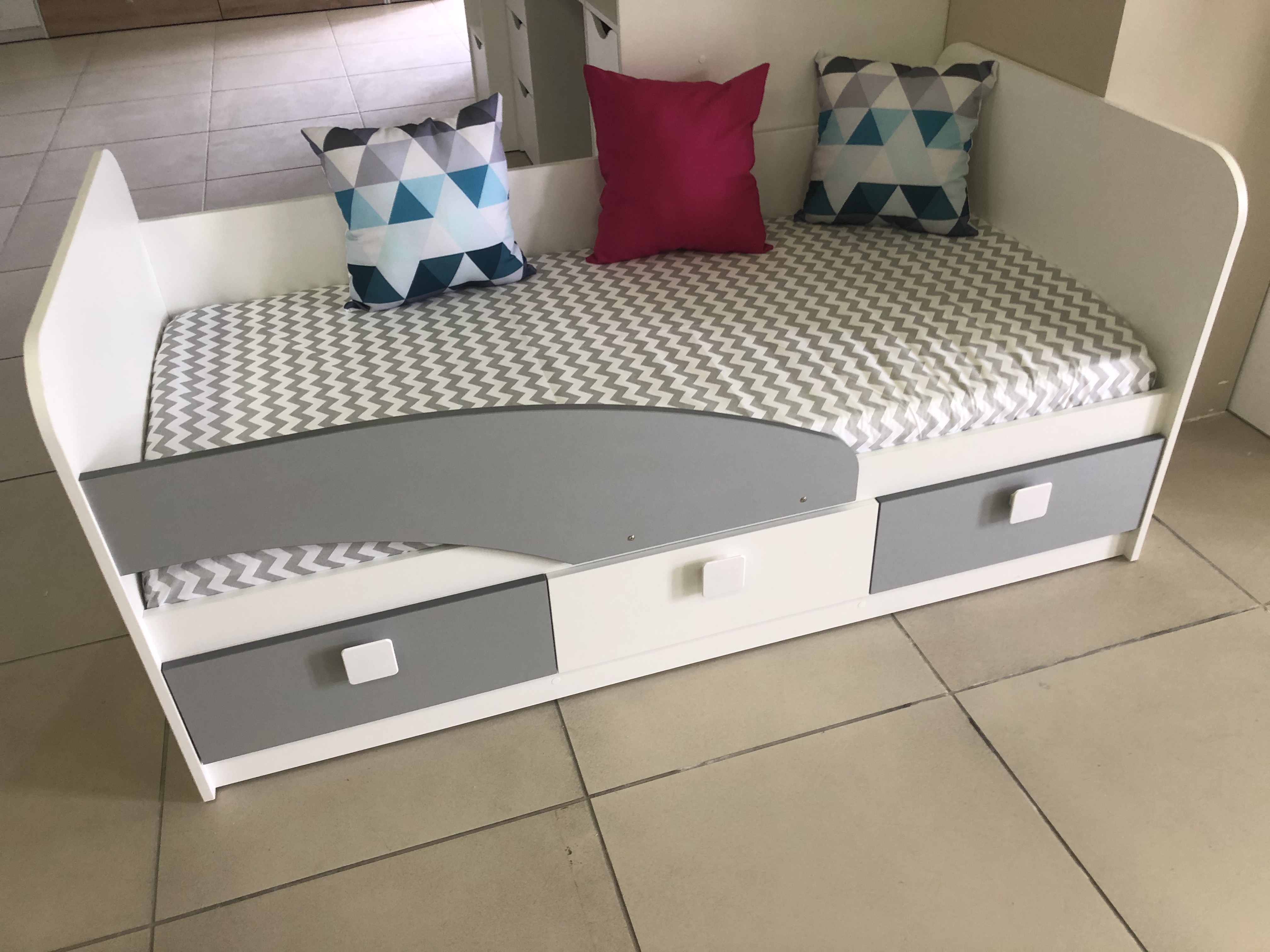 В кровать встроены три выдвижных ящика для белья и игрушек.