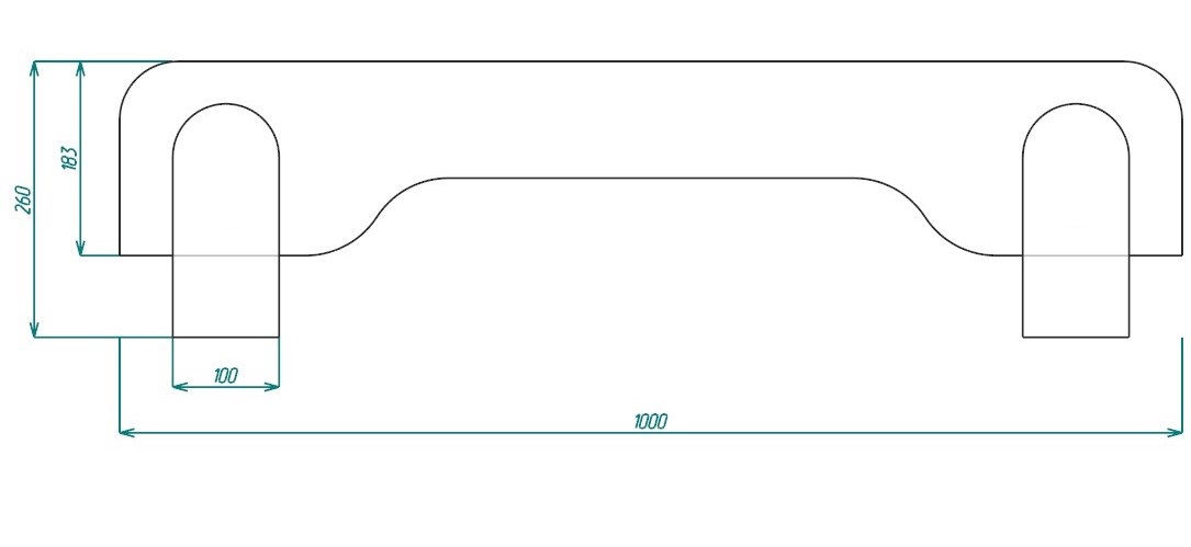 Размер: Длина 1000 мм, общая высота 260 мм