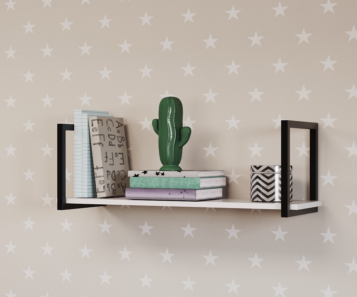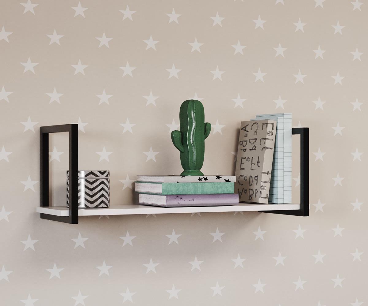 Открытая трендовая мини-полка идеально подходит для размещения над письменным столом школьника для хранения книг и учебников.